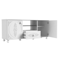 В каждой закрытой части тумбы имеется нижняя полка длинной 350 мм и шириной 360 мм. Над ней расположена дополнительная узкая полка шириной 160 мм, зонирующая пространство на две части. Более узкая верхняя полка позволяет размещать на нижней полке высокие предметы. Высота верхней полки в тумбе 160 мм, высота нижней полки до верхней в месте зонирования — 260 мм, полная высота — 420 мм.
