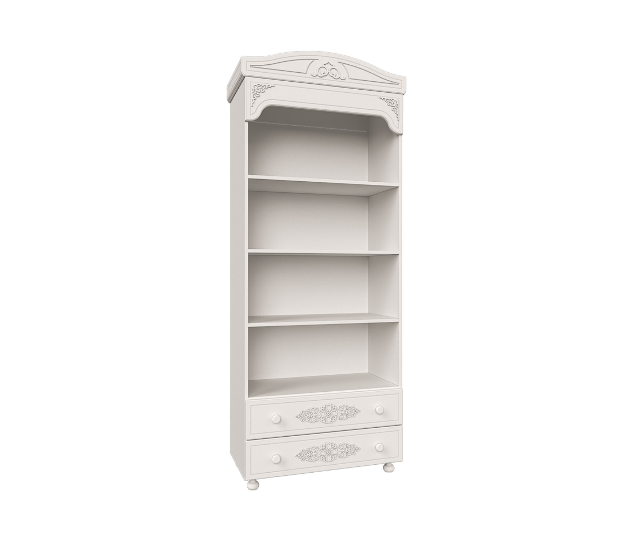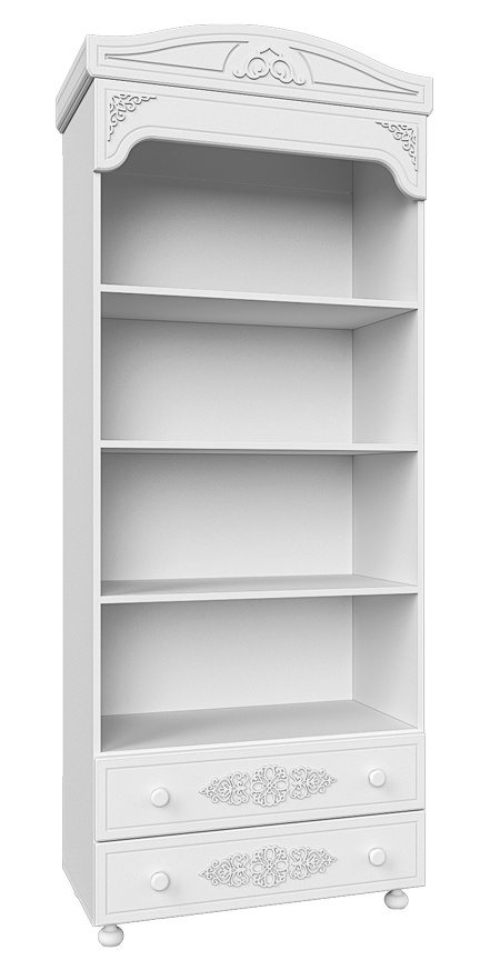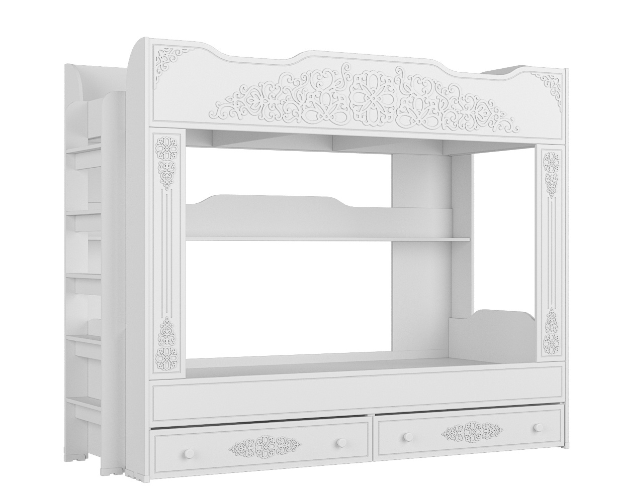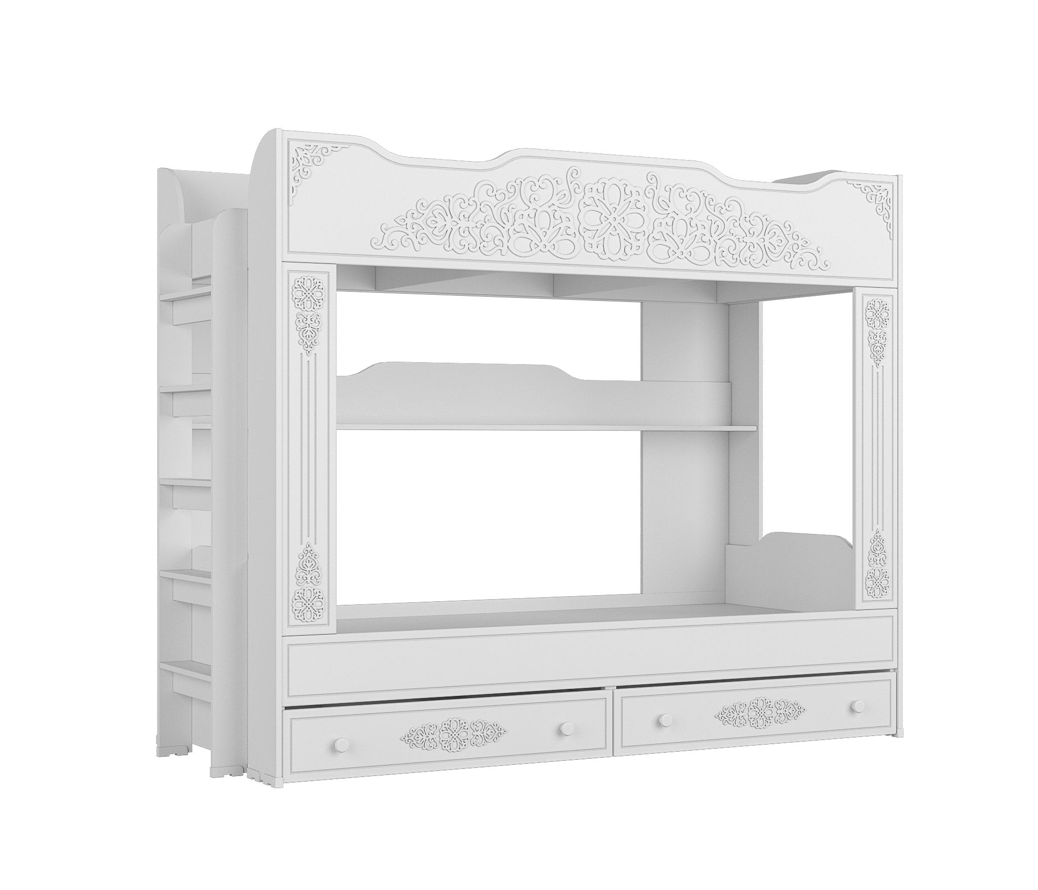 Полка с ящиками Ассоль АС-37 белое дерево - 1 шт.Комод Ассоль АС-19 белое дерево - 1 шт.Шкаф-пенал открытый (Стеллаж) Ассоль АС-3 белое дерево - 1 шт.Шкаф-пенал Ассоль АС-1 белое дерево - 1 шт. Кровать двухъярусная Ассоль АС-25 (2100x900) белое дерево - 1 шт.