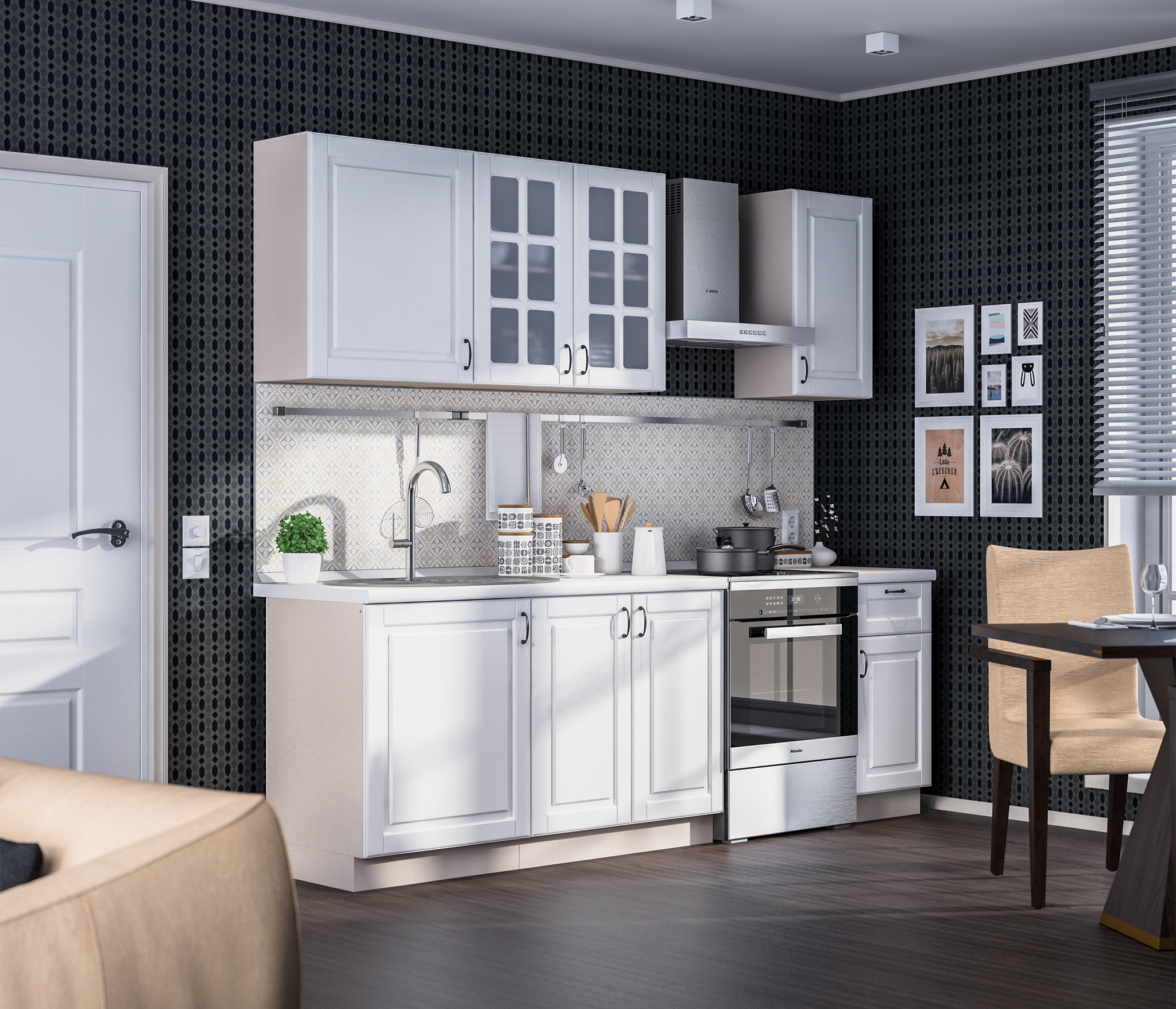 Обратите внимание:столешница,стеновая панель,цоколь,аксессуары,бытовая техника, мойка и сушка для посуды в комплект не входят, их необходимо приобретать отдельно.