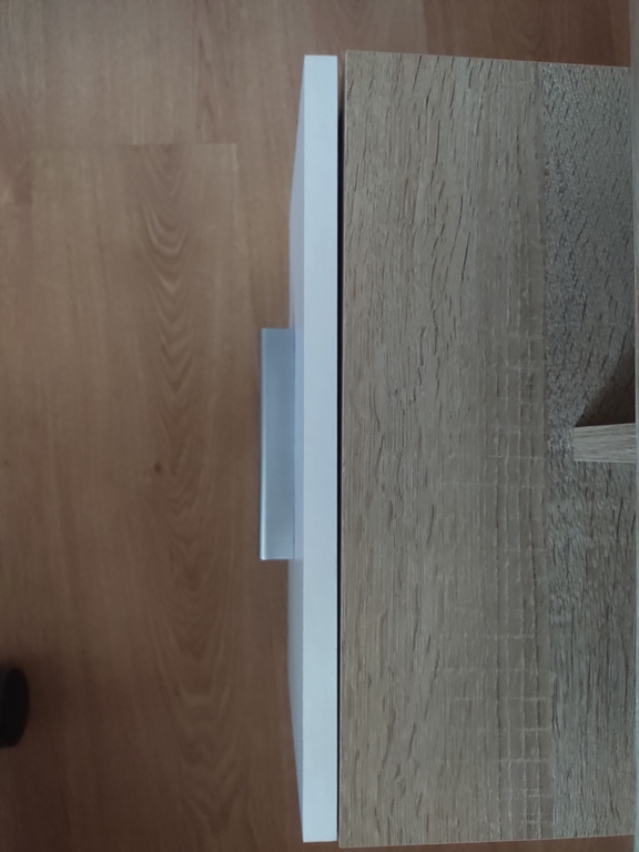Иногда случаются перекосы при сборке. Собирала дочь и выдвижной ящик немного перекошен, самую малость один угол выше. Так были подготовлены дырочки под шурупы, дочь сказала))) Немного пристукнул и все стало ровным)))
