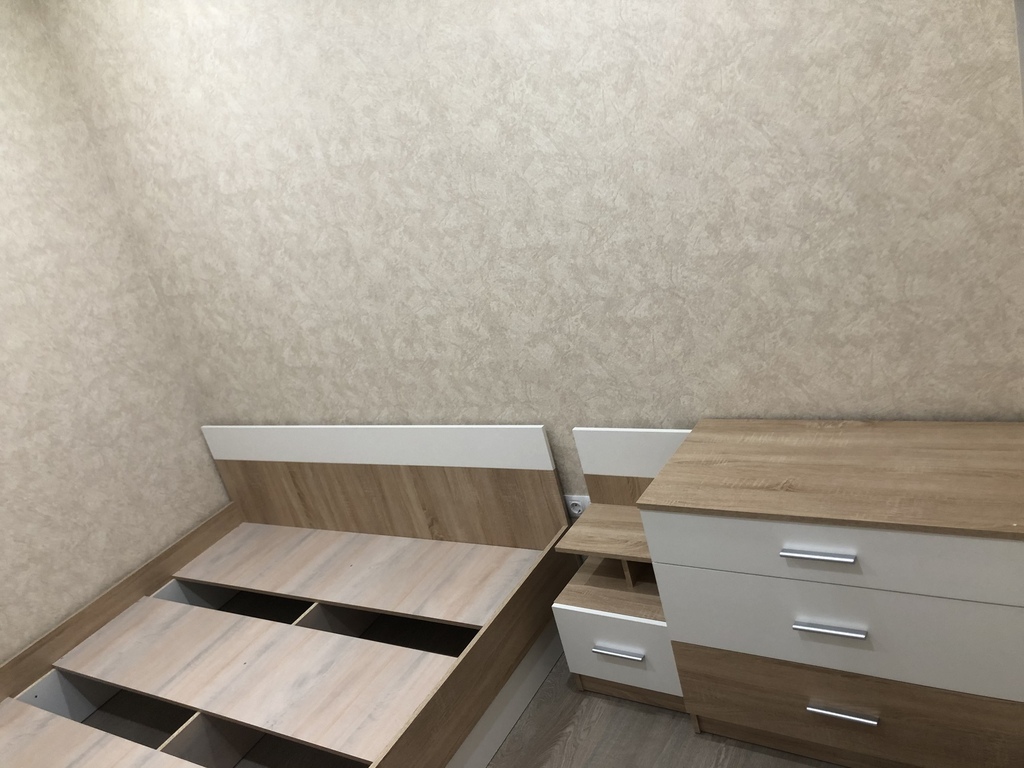 Шкаф пришел вовремя. Мастер собрал очень быстро. Недостающих деталей небыло. Тумбочки очень гармонично вписались в интерьер. У нас на полу ламинат "Дуб сонома". Шкаф и тумбочки прикроватные заказывали именно под цвет напольного покрытия.