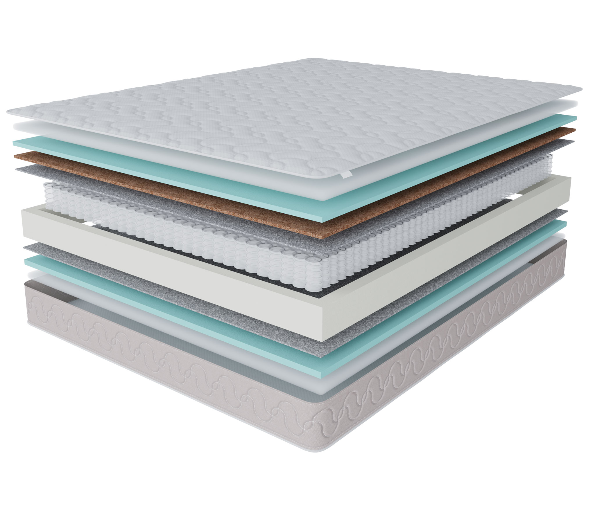 В основе данной модели лежит блок независимых пружин, данный тип пружин гарантирует правильную поддержку позвоночнику спящего, т.к. пружины работают независимо друг от друга, то обратное давление будет оказываться только там где это действительно нужно. Для защиты комфортных слоев матраса используется специальное термоволокно, которе предотвращает истирание слоев во время эксплуатации. Латексированный кокос, используемый в этой модели, в качестве основного комфортного слоя, делает одну из сторон более жесткой по отношению к другой, что дает вариативность и страхует от ошибки при выборе жесткости. Вторая сторона матраса усилена особо прочной и упругой пеной, которая позволит хорошо высыпаться.. Обращаем ваше внимание, что матрас отвечает за правильность положения нижнего и среднего отделов позвоночника, а за шейный- отвечает правильно подобранная ортопедическая подушка. Для увеличения срока эксплуатации матраса рекомендуем приобрести защитный чехол AquaStop.