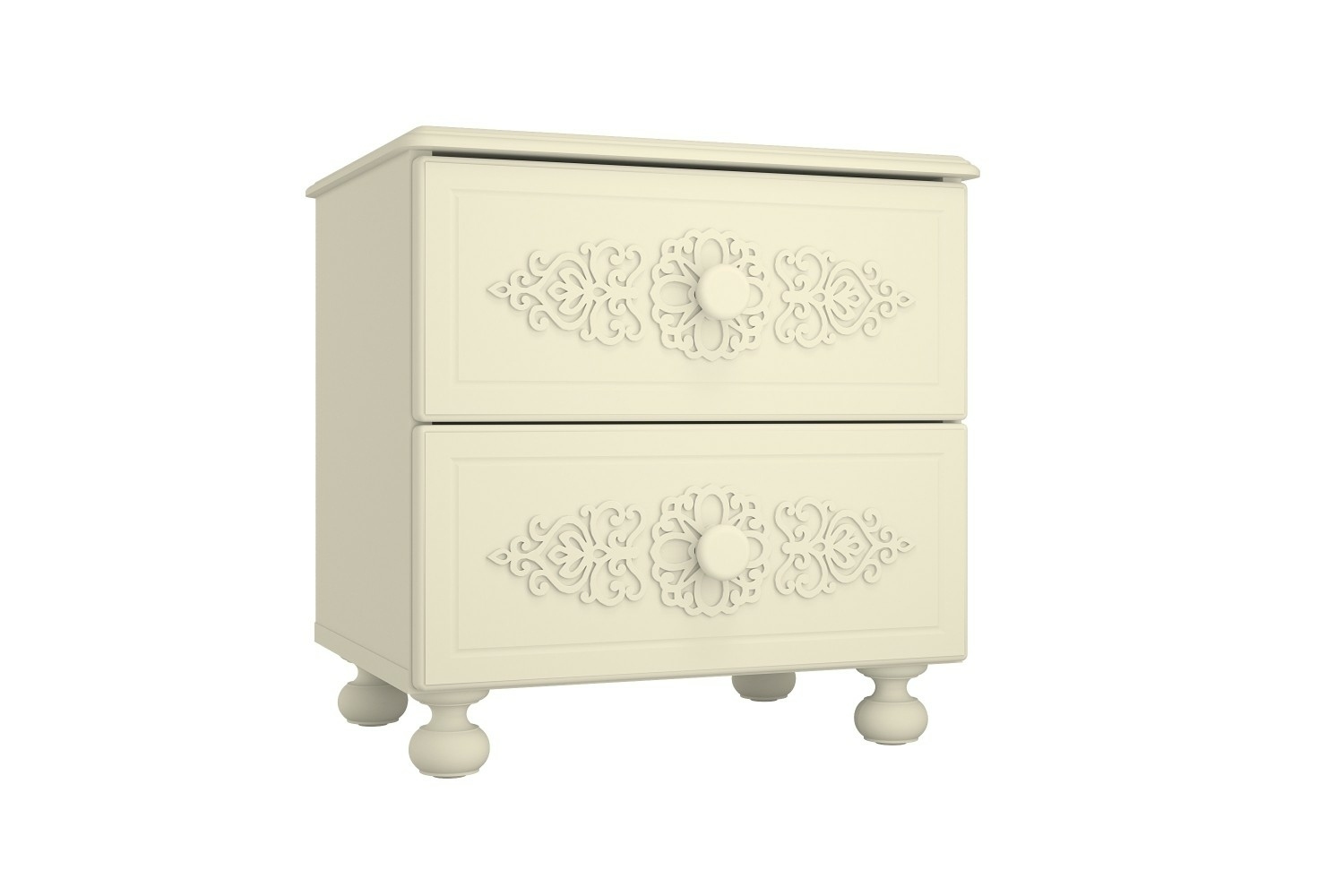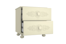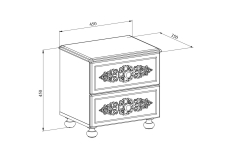 Прикроватная тумба с двумя выдвижными ящиками. Высота боковых стенок каждого ящика 120 мм, ширина ящика 340 мм, глубина 300мм. Ящики установлены на телескопических направляющих полного выдвижения.