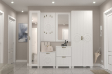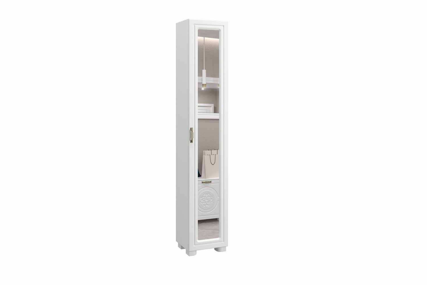 Цвет корпуса/фасада: белый структурный/белое дерево. Шкаф-пенал с зеркалом Монблан МБ-22К станет замечательным дополнением для обустройства комфортной и функциональной комнаты. За распашной дверью находятся полки, созданные для хранения сложенной одежды, белья, различных аксессуаров и коробок с обувью. Дверь шкафа может комплектоваться стеклом или глухим фасадом. Модуль может быть собран в зеркальном варианте "левым" или "правым". Высота опоры 50 мм.