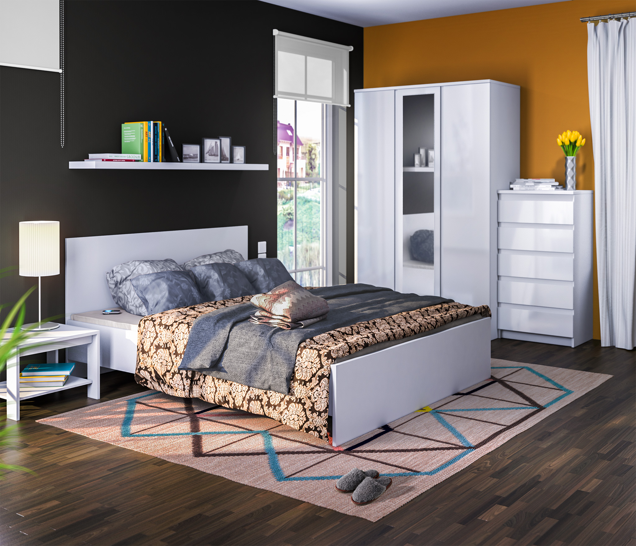 Комод Медея СБ-2455 (Белый/Белый глянец)