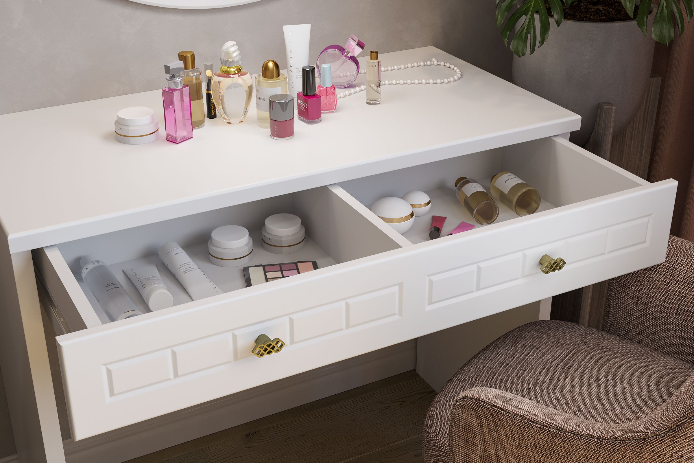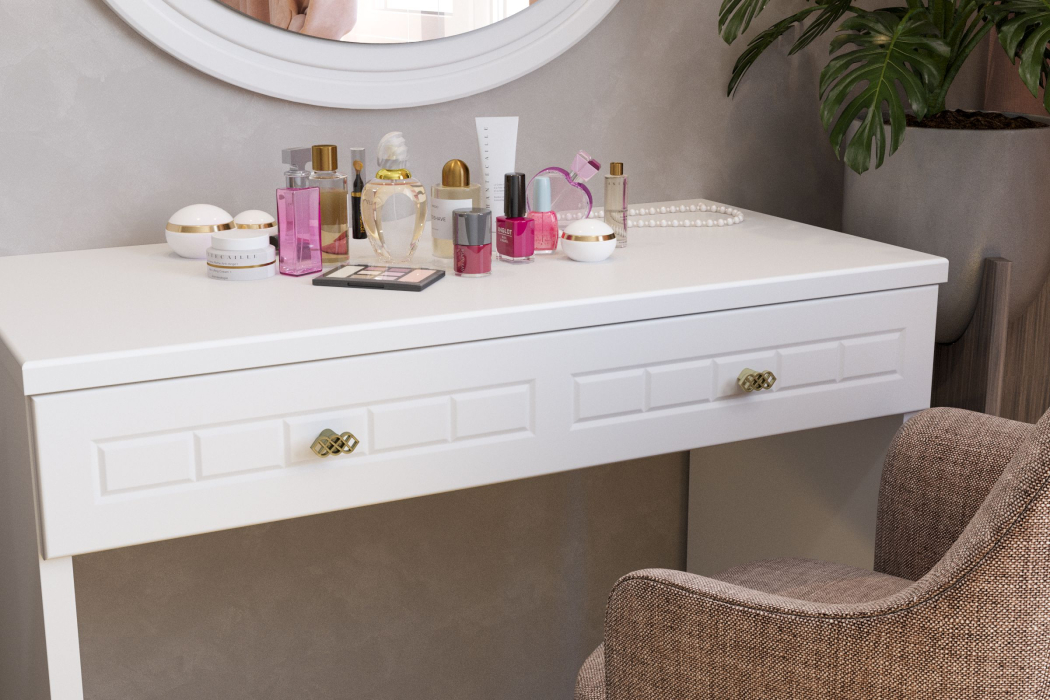 Туалетный столик – неотъемлемая часть спальни или женской комнаты. Каждая девочка, девушка или дама хочет иметь собственное пространство, свой уголок красоты, для того чтобы привести себя в порядок, нанести макияж, удобно и компактно расставить свою косметику и парфюмерию, аккуратно сложить украшения и аксессуары.