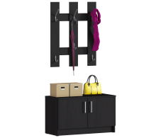 Прихожая Терра СБ-2555 оптимально впишется в интерьер небольшой прихожей. Этот функциональный модуль позволит аккуратно разместить одежду, сумки и головные уборы. Может быть дополнена другими модулями из коллекции Терра. Состоит из тумбы для обуви и вешалки с шестью крючками. Габаритные размеры тумбы для обуви – ширина 79 см, высота 45,6 см и глубина 35,3 см. Размеры настенной вешалки – ширина 62,7 см, высота 79 см и глубина 2,2 см. Производится комплект из экологичного КДСП. Оформленная в цвете Венге прихожая не создаст впечатление громоздкости.