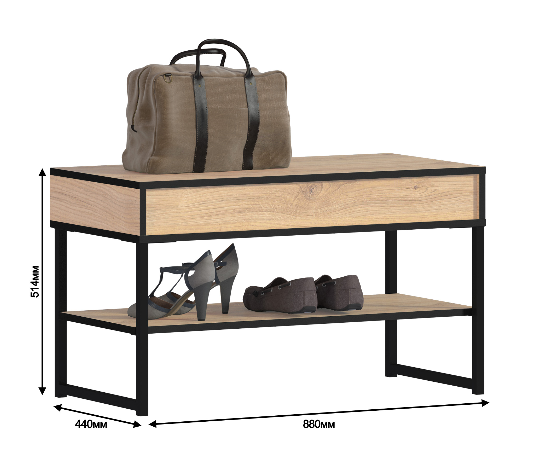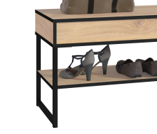 Тумба Лофт СБ-3105 – практичный и функциональный элемент модульной коллекции Лофт. Благодаря компактным размерам и продуманному минималистичному дизайну, тумба не создает впечатление громоздкости. Тумба выполнена в актуальном сегодня стиле лофт, для которого характерны простые формы, отсутствие навязчивого декора, сочетание разных по фактуре материалов. Габаритные размеры – ширина 88 см, высота 51 см, глубина 44 см. Тумба оснащена вместительным ящиком и полкой для хранения обуви. Выполнена тумба из прочного ЛДСП с отделкой в оттенке «Дуб Минерва». Ножки и декоративные детали из черного матового металла.