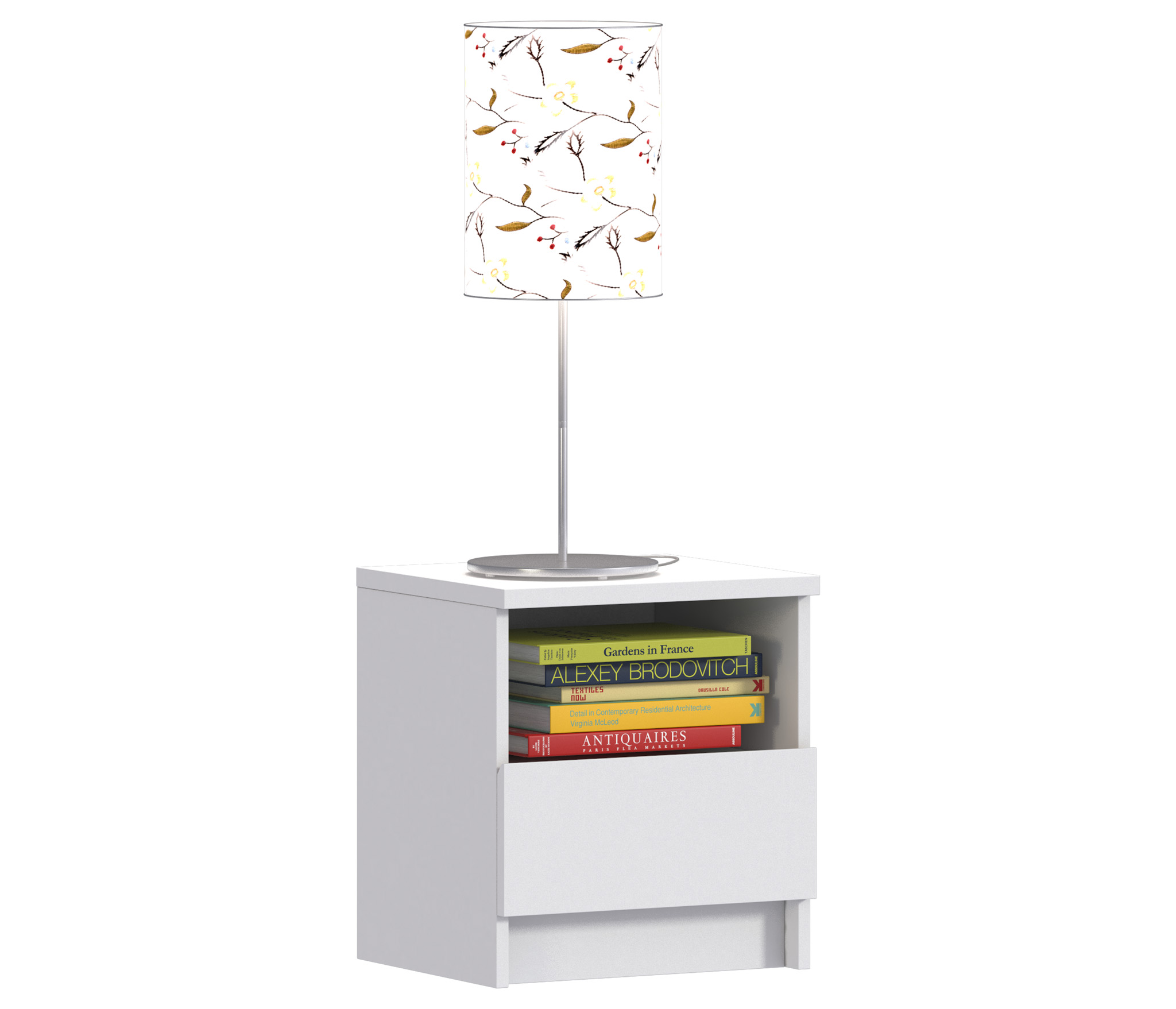 Габаритные размеры тумбы - ширина 40 см, высота 44 см, глубина 35 см, Один выдвижной ящик и открытое отделение, куда положить планшет или книгу. Стиль тумбы современный - Сканди, хай тек. Наиболее выигрышно тумба будет смотреться в интерьере в сочетании с другими предметами мебели из коллекции "Веста". Корпус и фасад тумбы выполнен из современного и прочного ЛДСП.