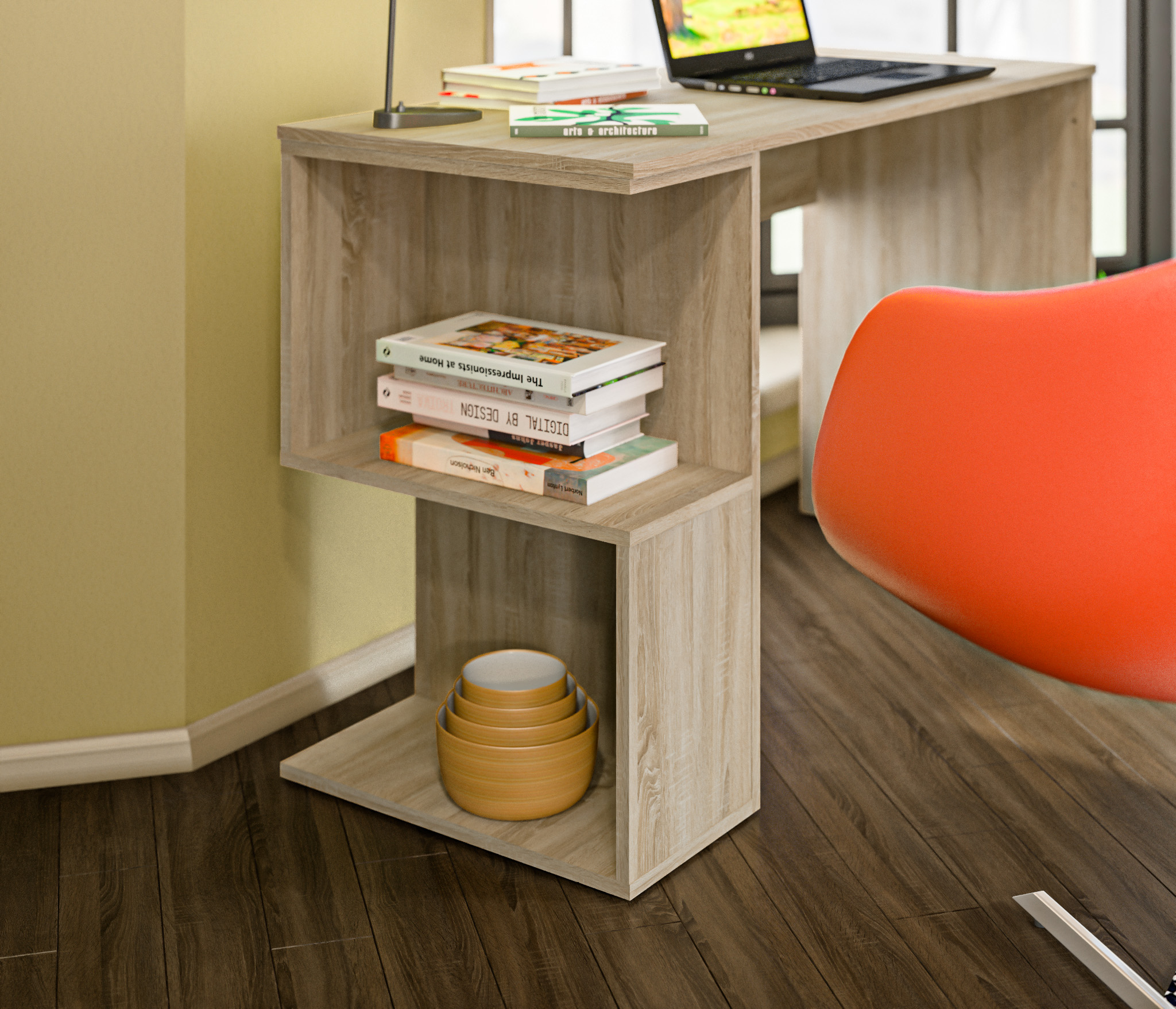 Стол Кито СБ-3212 можно рассматривать как отдельный предмет мебели, а можно стилизовать его в гарнитуре. Стол достаточно компактен – ширина 119 см, высота 75 и ширина 50 см. Под рабочей поверхностью расположена открытая тумба с отделениями для хранения книг, журналов, документов. Стол Кито цвета Дуб Сонома выполнен в лаконичном, современном, стиле и будет органично смотреться как в комнате школьника или студента, так и в кабинете или офисе. Материал отделки КДСП устойчив к влаге, что актуально для белых предметов мебели.