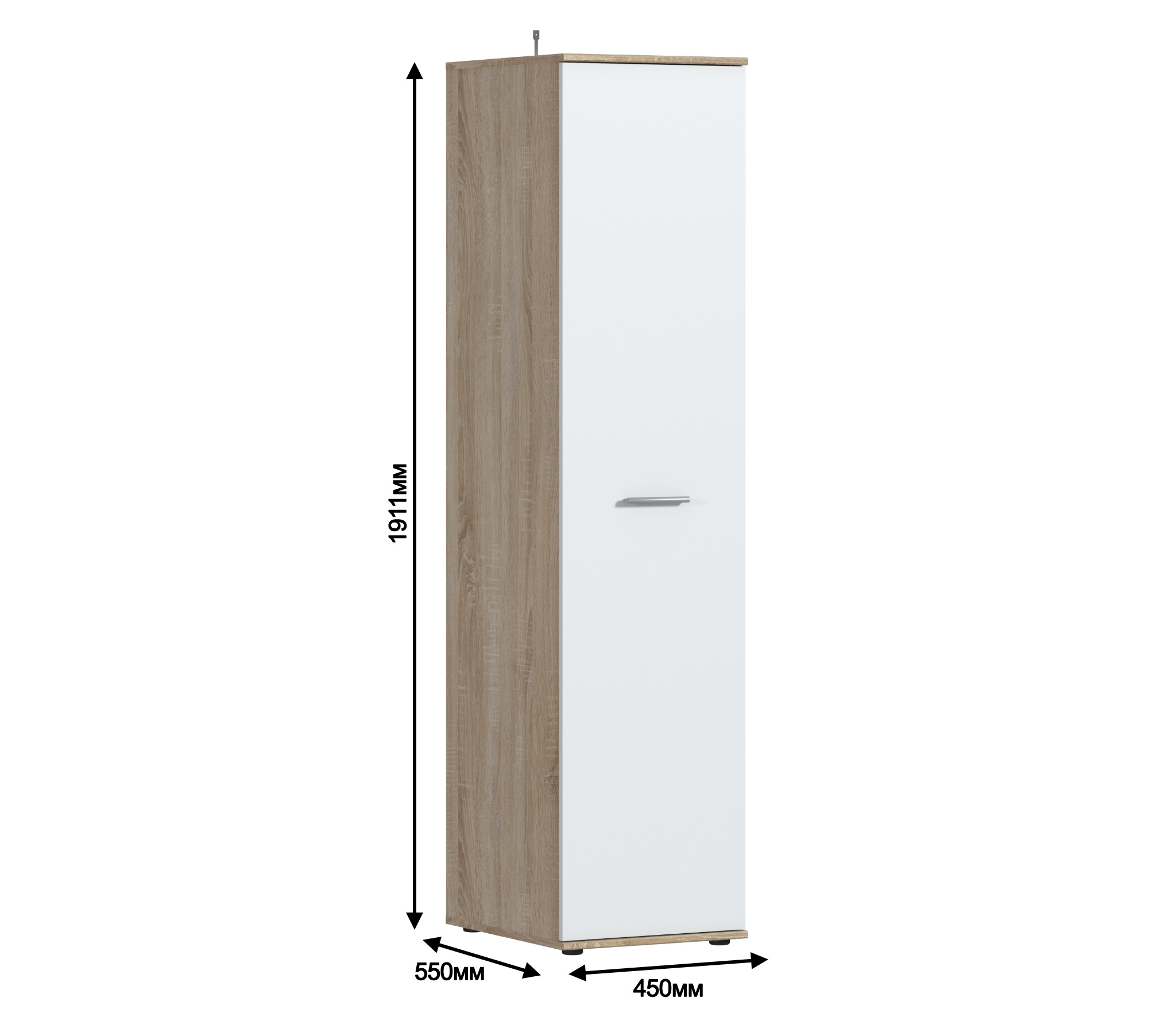 Шкаф 1 дверный Мамбо СБ-2677.Н (Дуб Сонома, Белый)