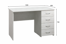 Материал корпуса/фасада: ЛДСП 16 мм Размеры модуля (ш/г/в) в мм: 1200х600х750 Стол письменный предназначен для эксплуатации в офисах, образовательных учреждениях, а также домашних условиях. Оборудован тумбой с 4 ящиками. Тип направляющих ящиков: роликовые. Регулируемые опоры позволяют компенсировать возможные неровности пола.