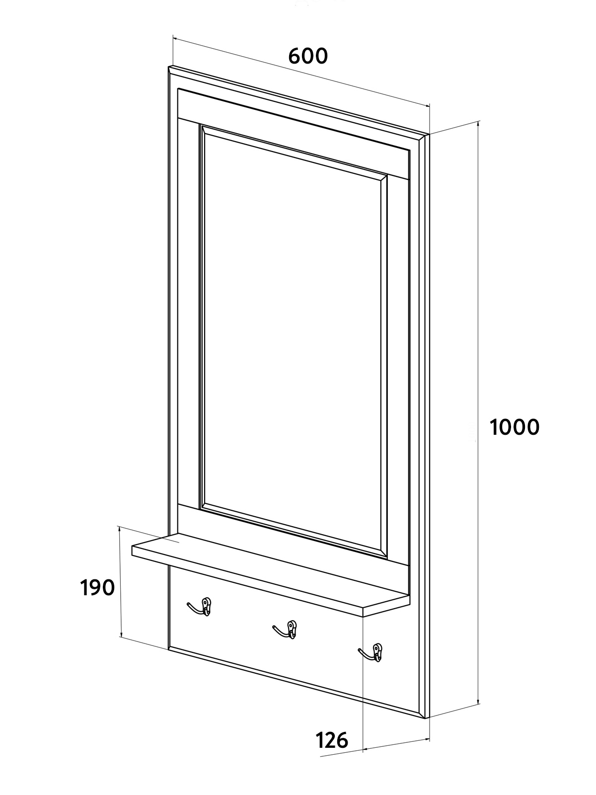 Размеры модуля (ш/г/в) в мм: 600х126х1000.