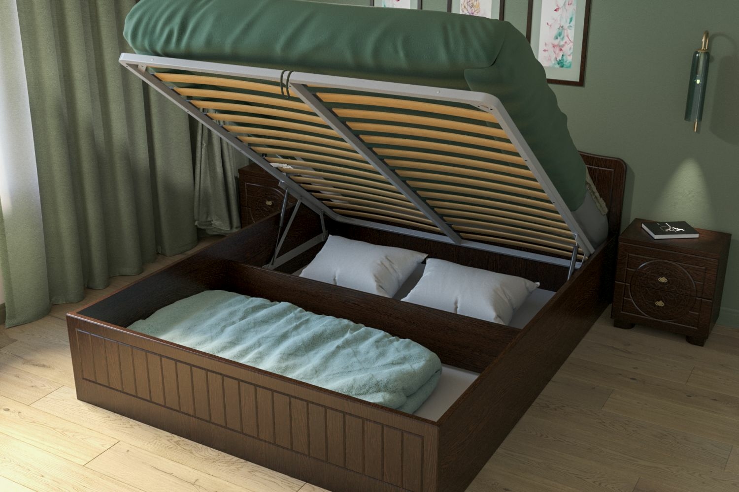 Материал корпуса/фасада: ЛДСП/МДФ. Цвет корпуса/фасада: венге/орех шоколадный. Размеры модуля (в/ш/г) в мм: 1130х1672х2070. Основание кровати: ламели с подъемным механизмом. Особенности: короб для хранения постельного белья.