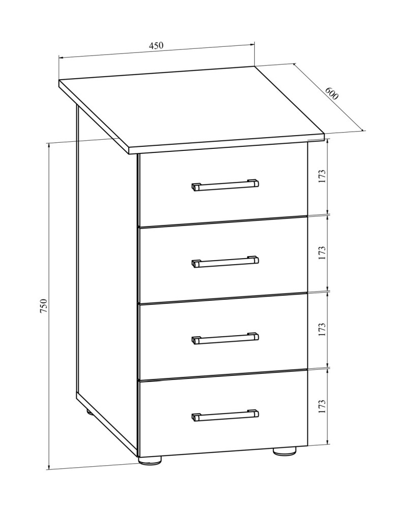 Материал корпуса/фасада: ЛДСП 16 мм. Размеры модуля (д/ш/в) в мм: 450х600х750.