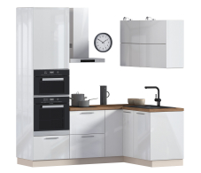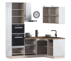 Кухонный гарнитур угловой Анна + Регина Песочный / Белый глянец 2,1 м*1,4 м (Белый Глянец)