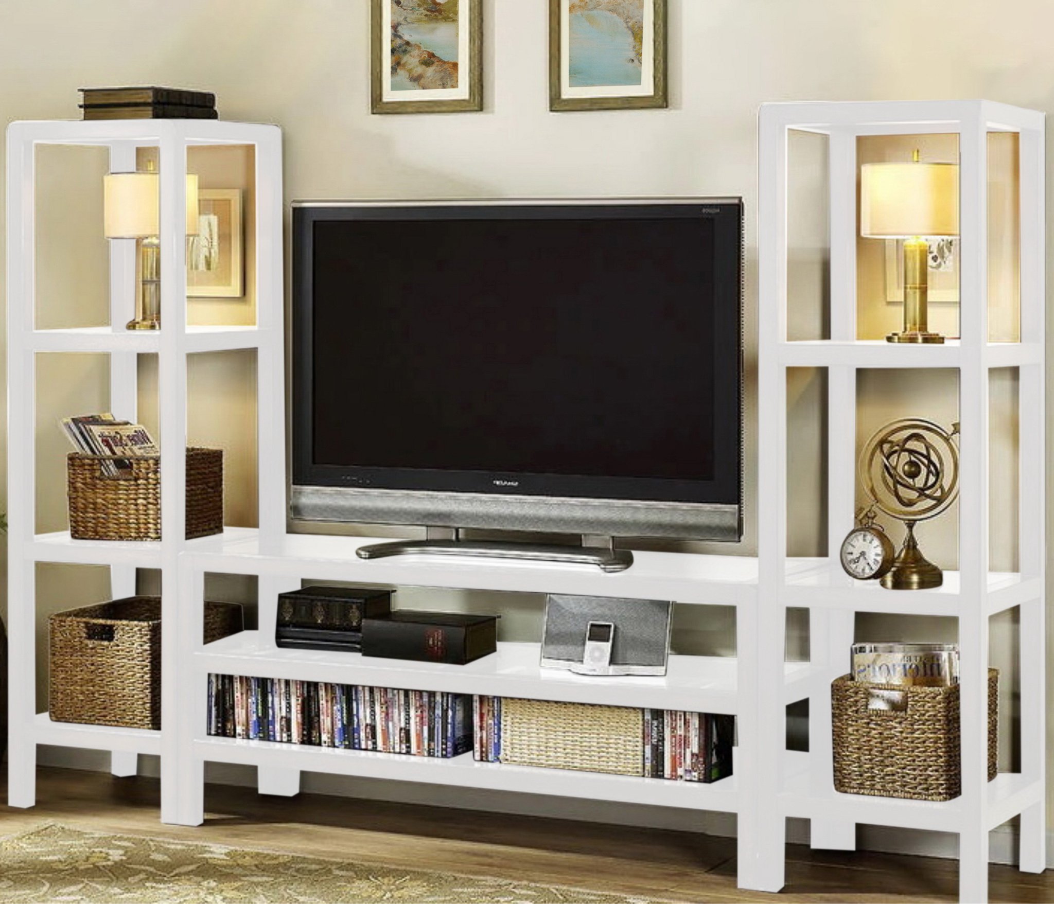 со стеллажом, глянцевые фасады, С полками, С ТВ тумбой