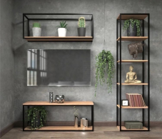 Каркас: профильная труба 20х20 мм.Прочное полимерно-порошковое покрытие черного, белого и серого цвета Дерево: массив сосны 20 мм, покрытое специальным маслом для мебели, цвета на выбор: бесцветный, белый, серый, махагон, орех, морёный дуб, черный, клён, черный графит, голубой графит, темное золото графит, золото графит.