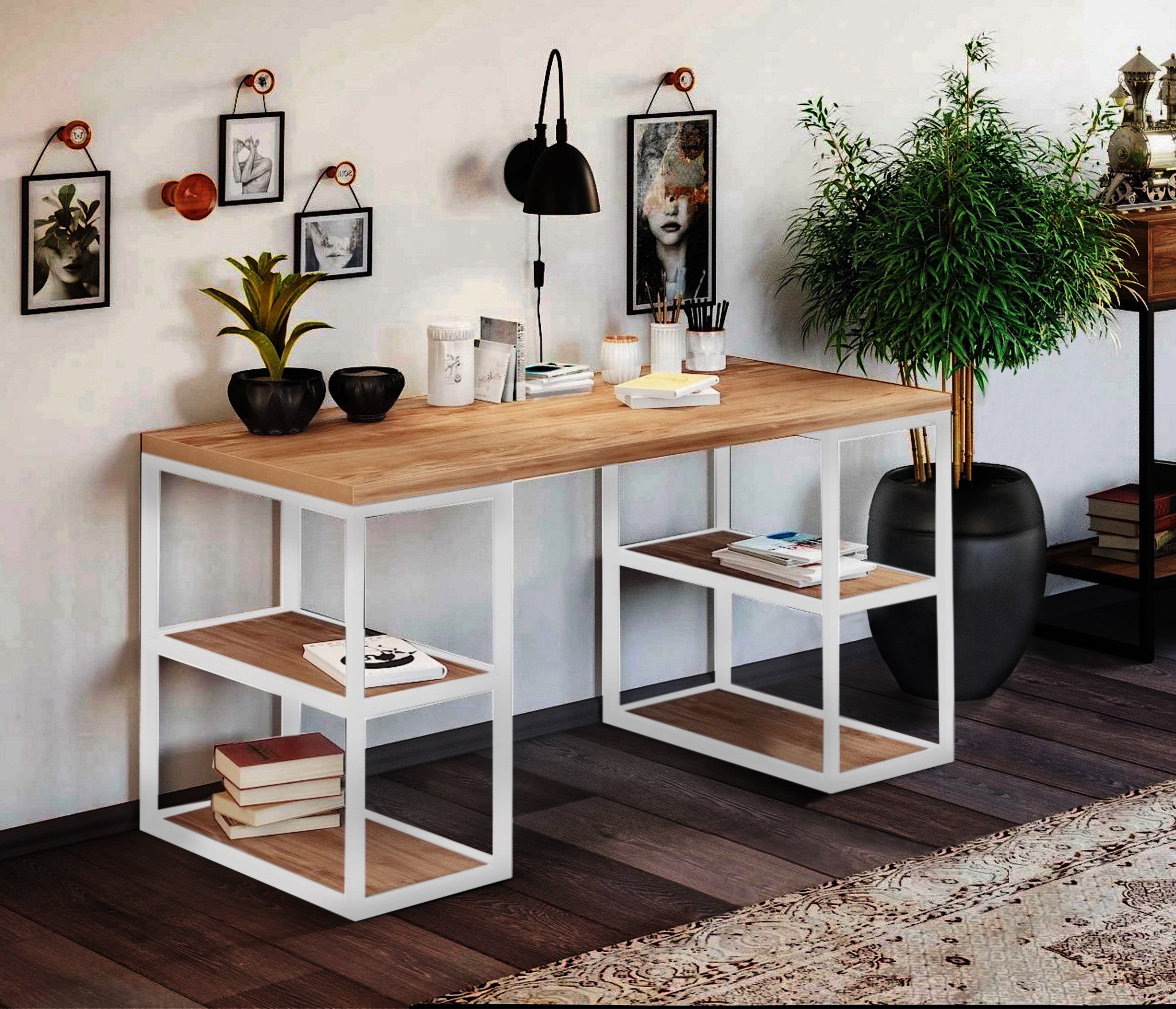 Каркас: профильная труба 20х20 мм.Прочное полимерно-порошковое покрытие черного, белого и серого цвета Дерево: массив сосны 20 мм, покрытое специальным маслом для мебели, цвета на выбор: бесцветный, белый, серый, махагон, орех, морёный дуб, черный, клён, черный графит, голубой графит, темное золото графит, золото графит.