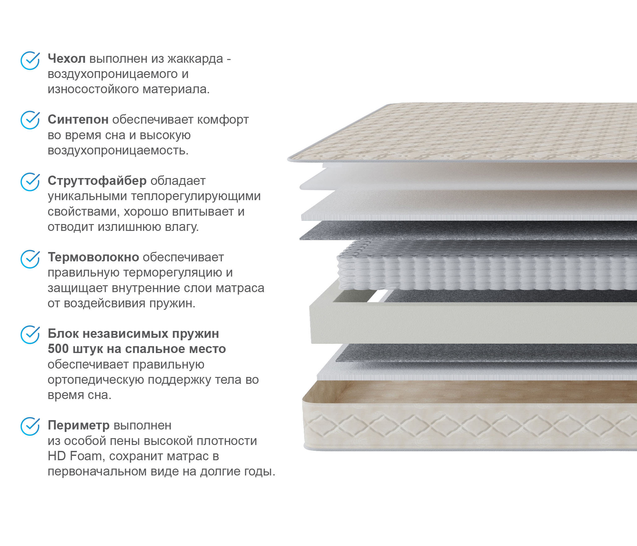 Хороший матрас за свои деньги. Мягкий, удобный, прочный. Спать на нем одно удовольствие.