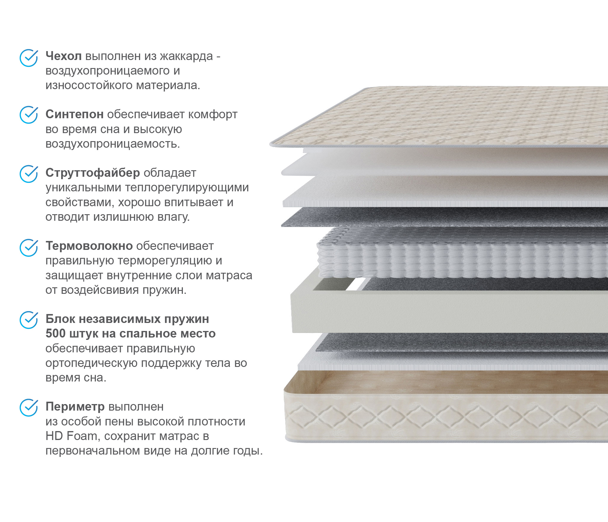 Хороший матрас за свои деньги. Мягкий, удобный, прочный. Спать на нем одно удовольствие.