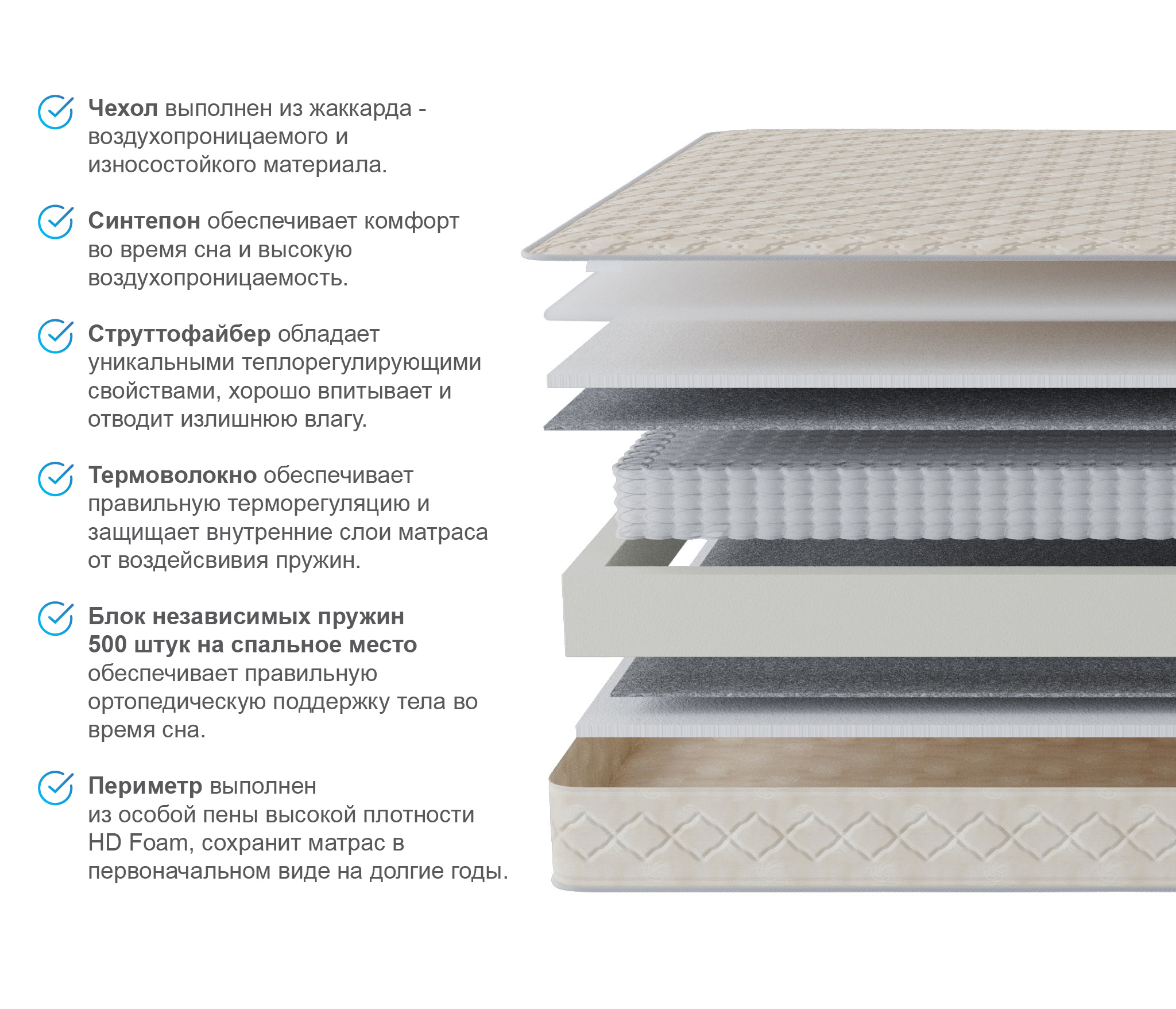Хороший матрас за свои деньги. Мягкий, удобный, прочный. Спать на нем одно удовольствие.