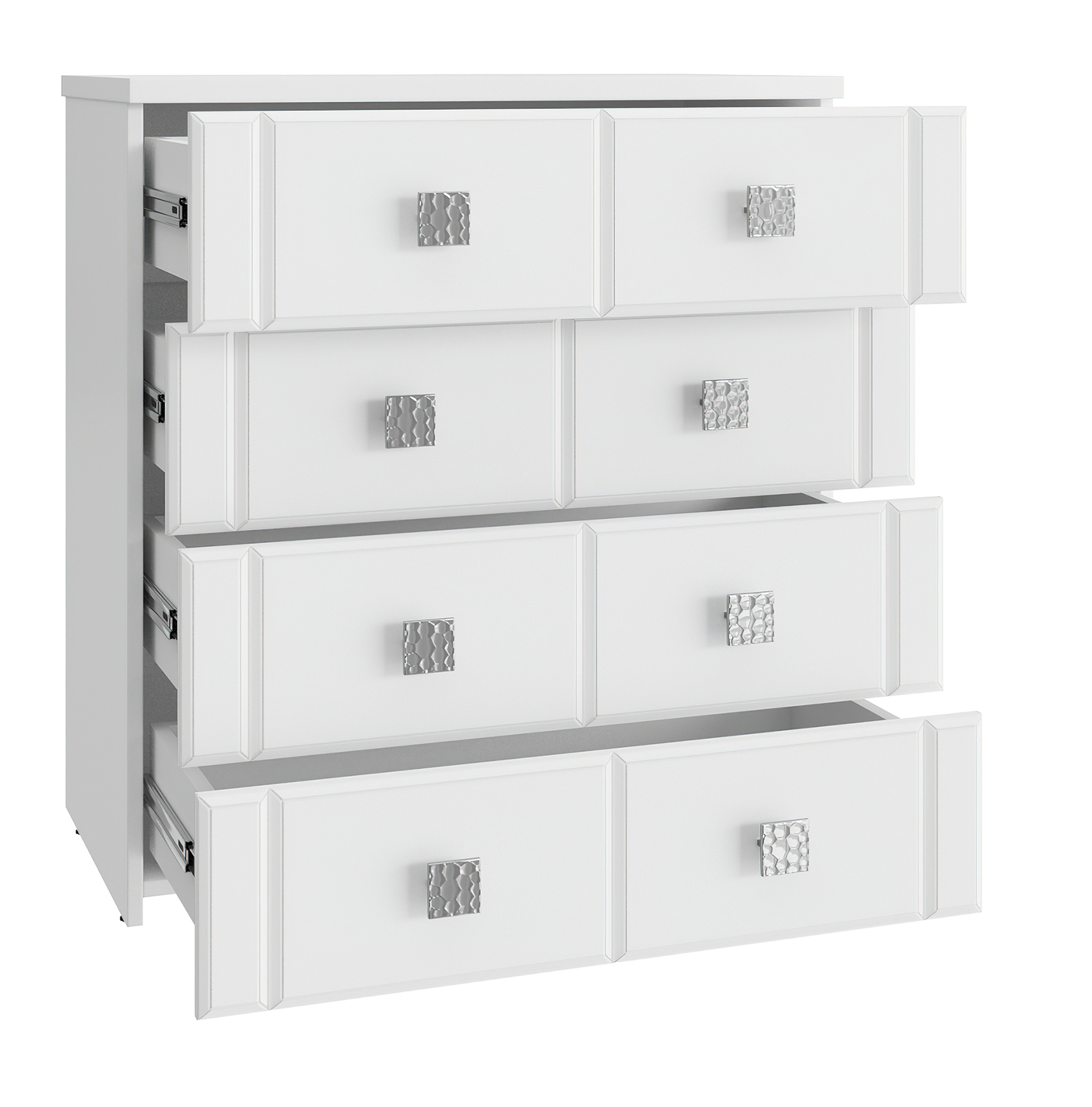 Комод Изабель ИЗ-50К станет прекрасным дополнением вашей гостиной или комнаты, состоит из четырех выдвижных ящиков. В ящиках используются телескопические направляющие полного выдвижения.Важная информация.Мебель доставляется в разобранном виде, в упаковках.