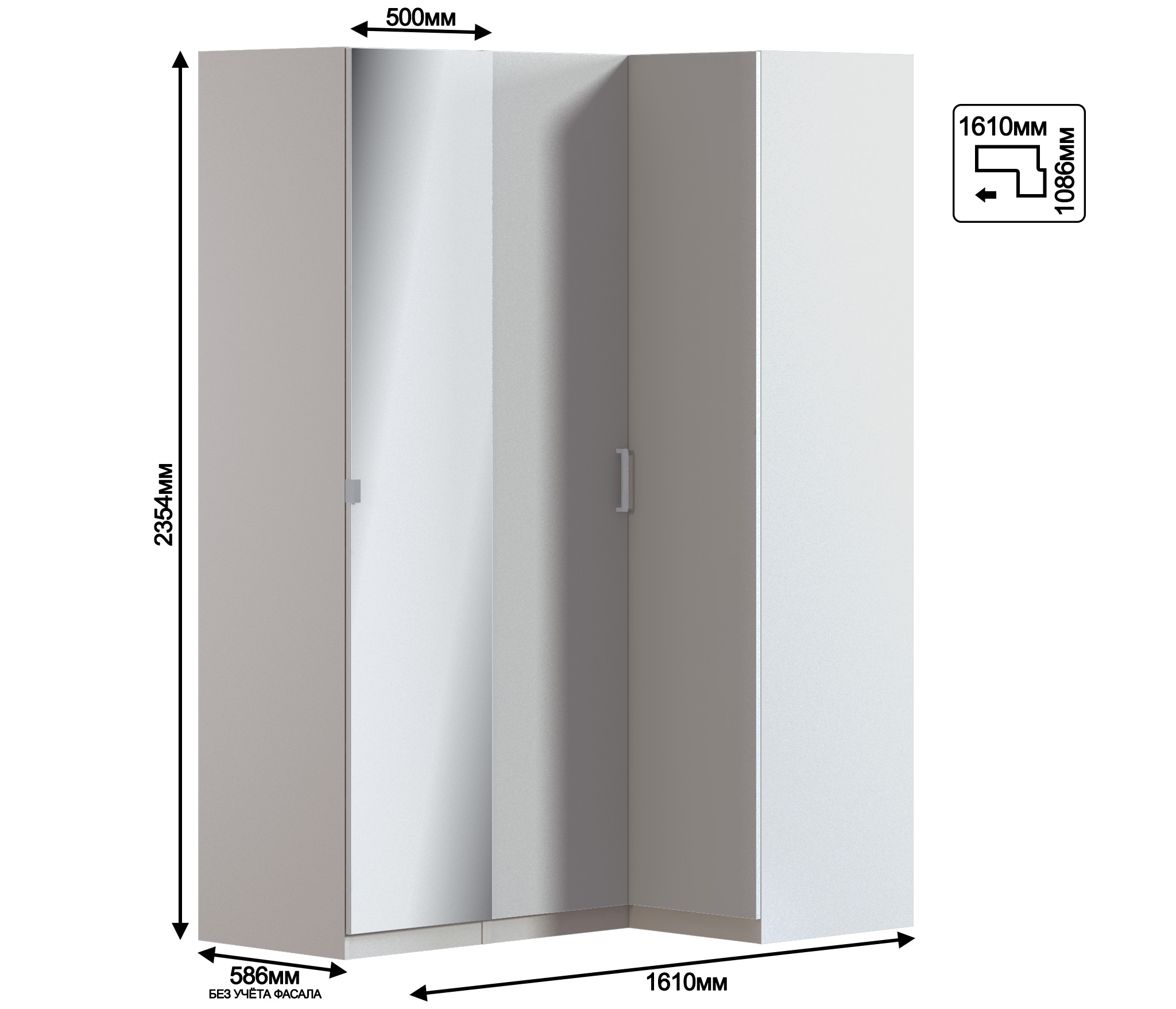 Шкаф угловой с зеркалом МАКС Серый перламутровый (Серый Перламутровый)