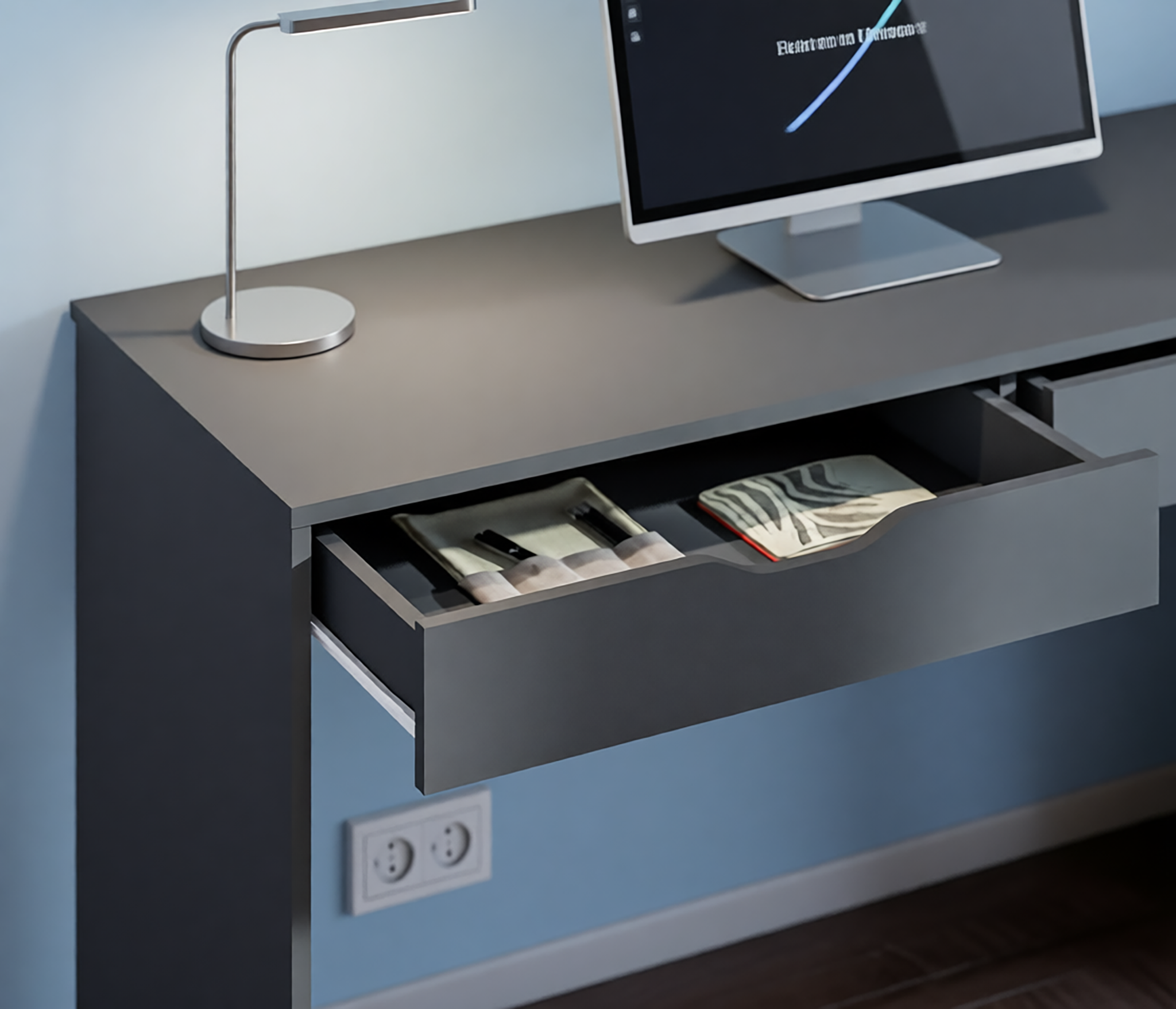 Минималистичный декор, отсутствие ручек и нейтральный цвет стола позволят разместить его в любой интерьер. Также вы можете дополнить письменный стол Бруклин комодами одноименной коллекции.