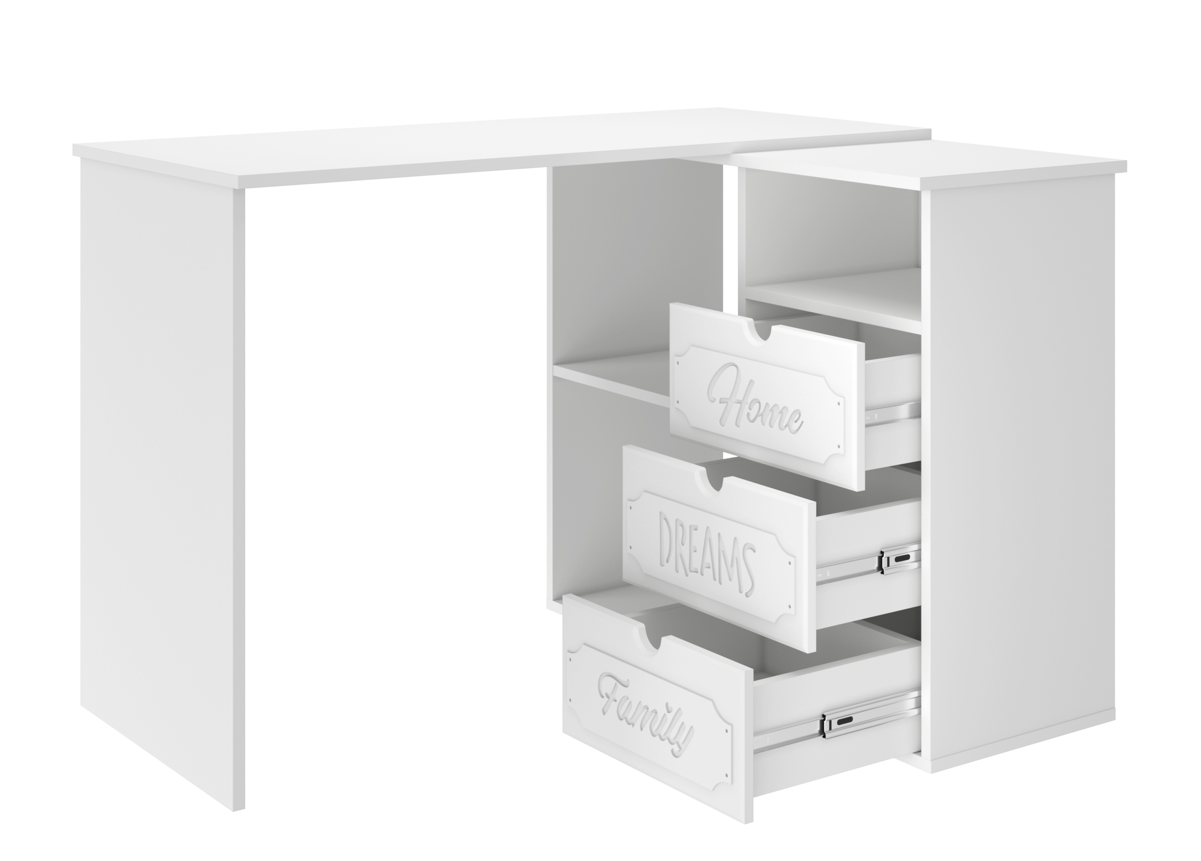 Угловой стол ДримСтар ДС-5 станет отличным местом для работы. Стол оснащен тумбой с тремя выдвижными ящиками, нишей и двум полками, где можно хранить блокнот, канцелярские принадлежности, книги и журналы. Стильный дизайн позволит разместить в любом современной интерьере. Модуль может быть собран в зеркальном варианте "правым" или "левым". Фурнитура: телескопические направляющие полного выдвижения.