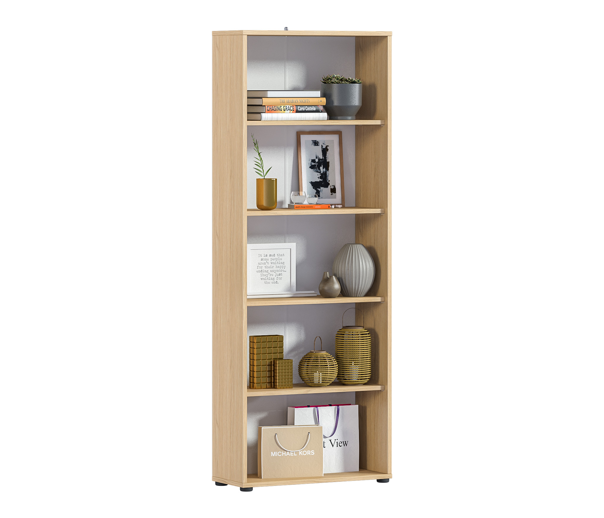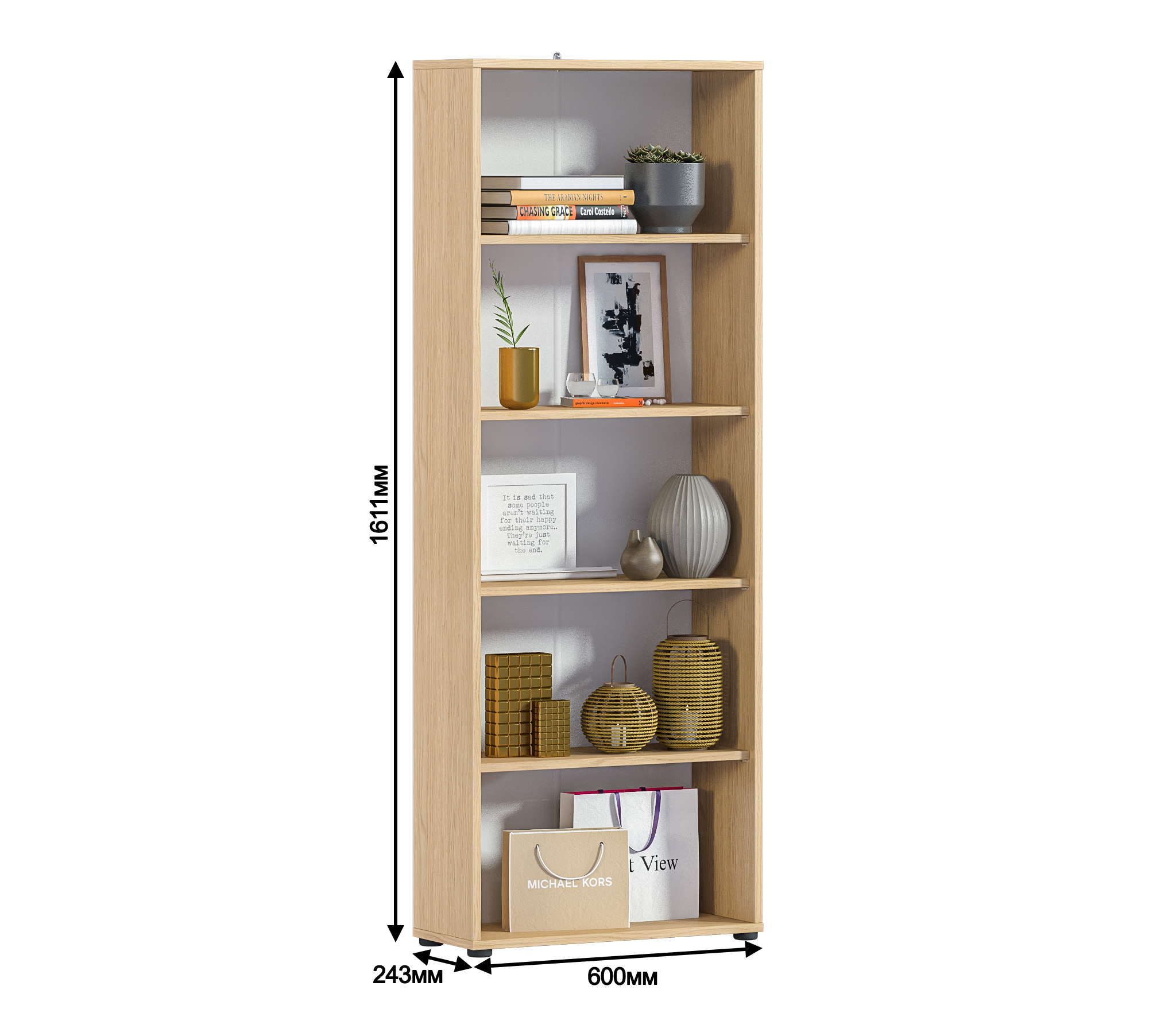 Габаритные размеры – ширина 60 см, высота 161,1 см и глубина 24,3 см. На шести открытых просторных полках можно без труда разместить книги, журналы, сувениры и множество памятных предметов.