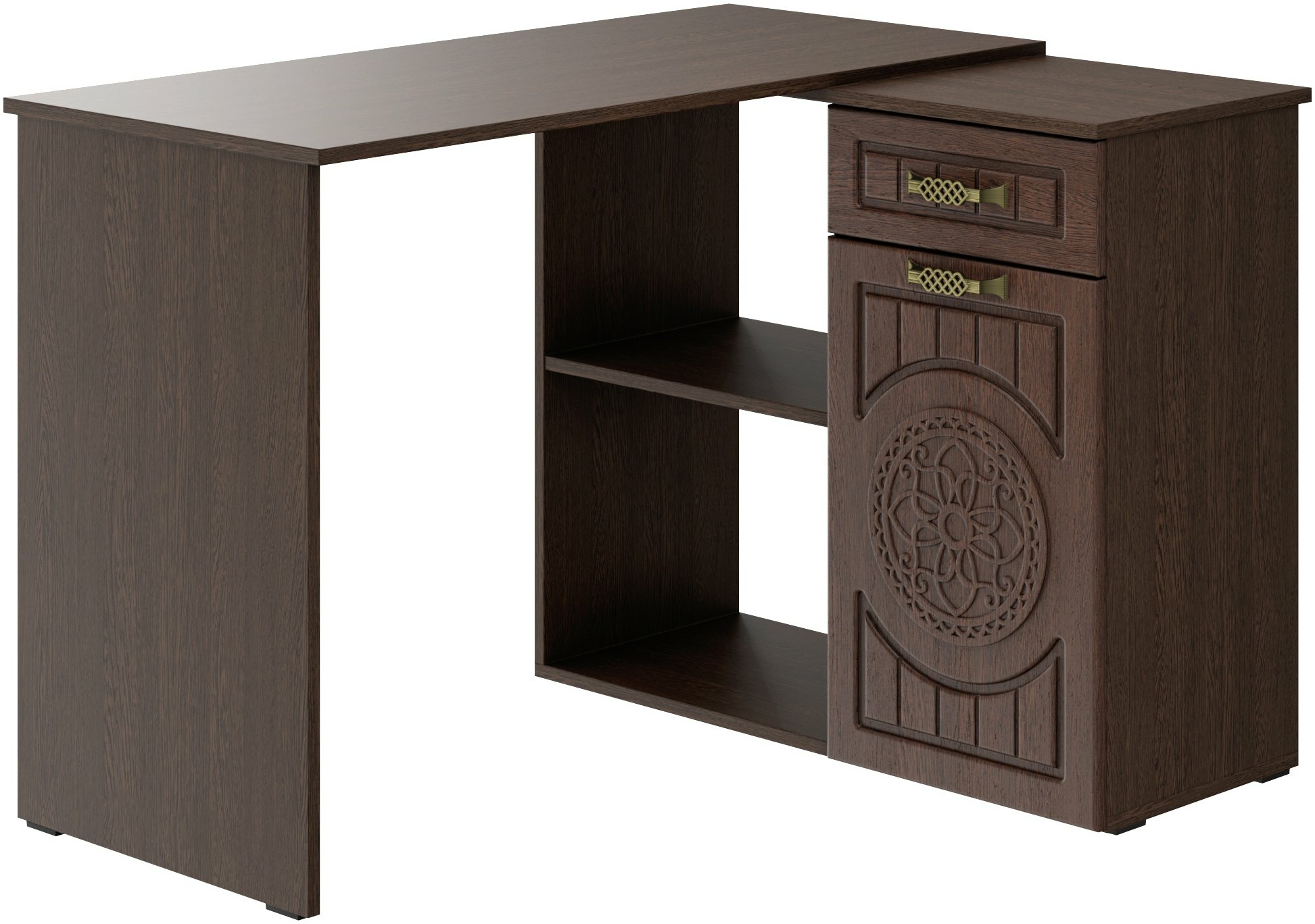 Угловой стол Монблан МБ-74К станет отличным местом для работы. В выдвижном ящике можно хранить блокнот, канцелярские принадлежности. Стильный дизайн позволит разместить в любом современной интерьере. Модуль может быть собран в зеркальном варианте "правым" или "левым". Фурнитура: телескопические направляющие полного выдвижения, петли с доводчиками.