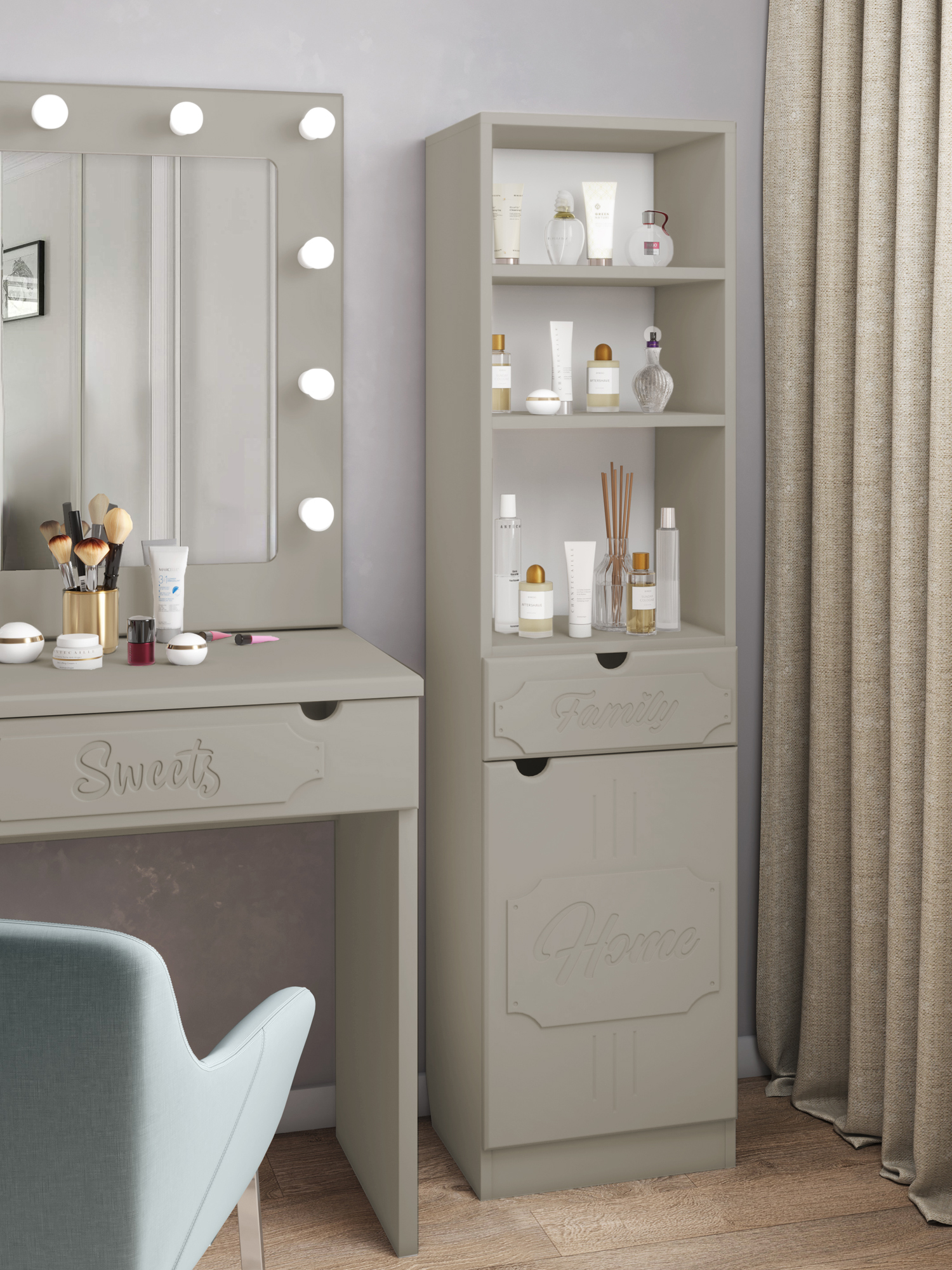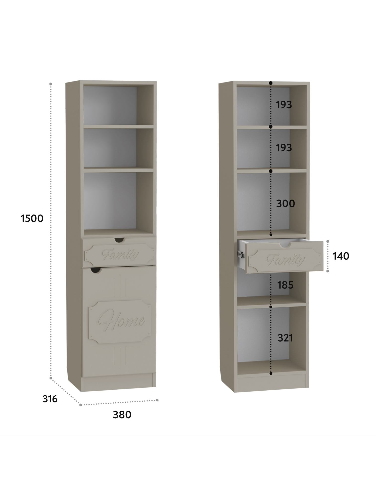 Пенал ДримСтар ДС-62 станет прекрасным дополнением вашей гостиной, спальни или детской комнаты. Пенал имеет три отделения, верхнее отделение с двумя открытыми полками, нижнее отделение с дверью и полкой, посередине выдвижной ящик. Фурнитура: петли с доводчиками, телескопические направляющие полного выдвижения.