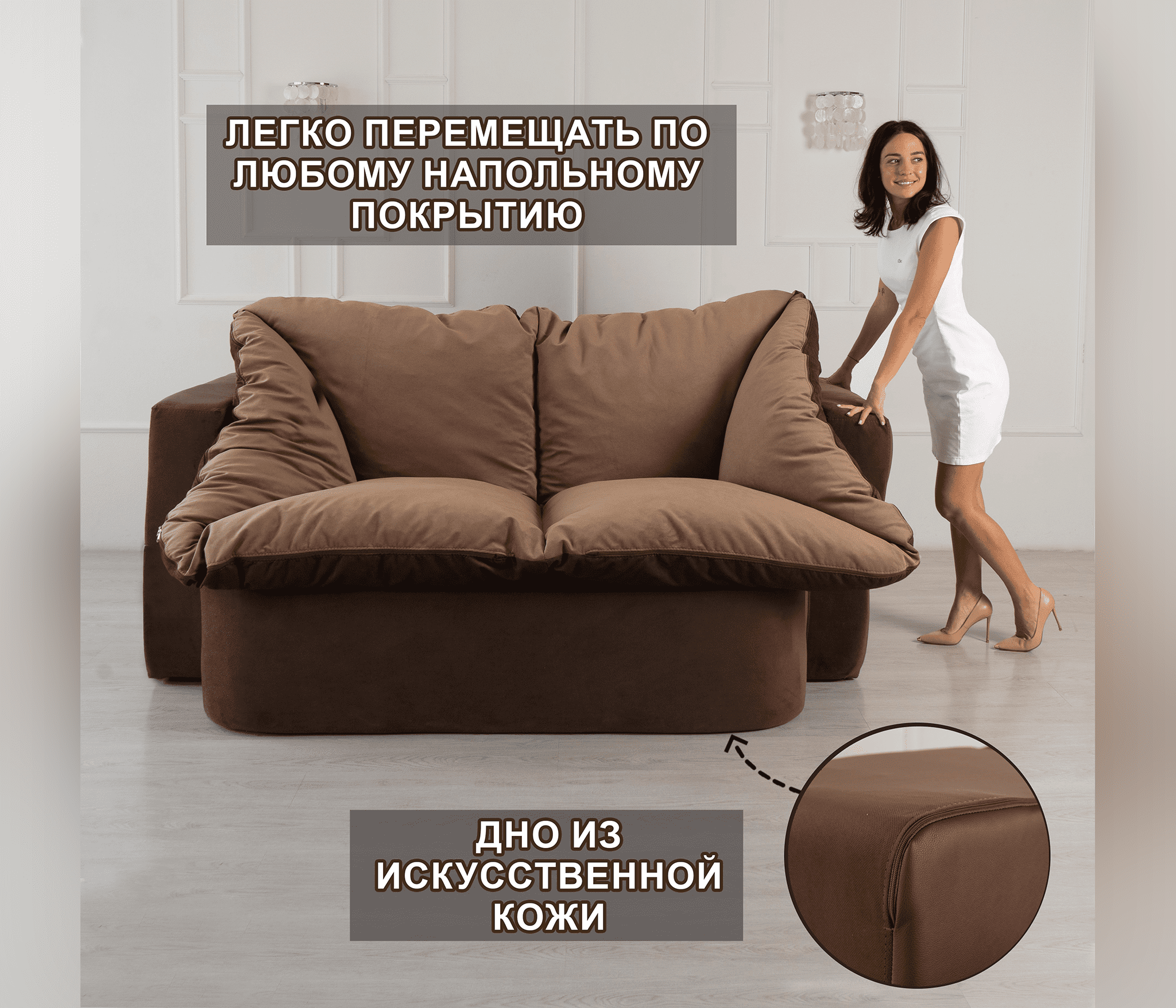 За счет того, что диван без каркаса и механизма, его легко самостоятельно перевезти, например на дачу. И в отличие от всех стандартных диванов, он не требует сборки. Такого набора достоинств нет ни у одного обычного дивана!