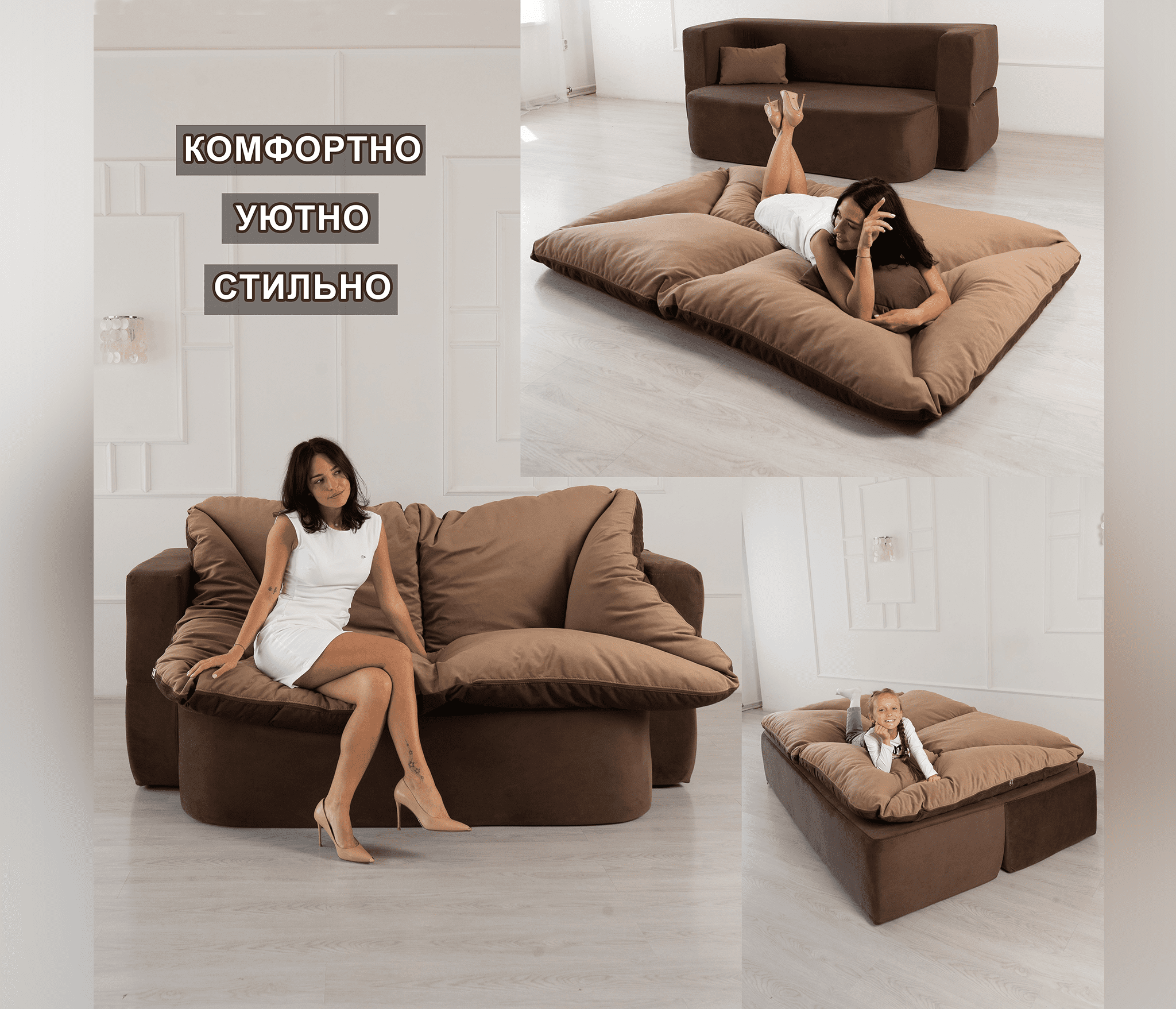 Бескаркасный раскладной диван кровать Дадли – идеальное решение для тех, кто хочет оригинальности и разнообразия.