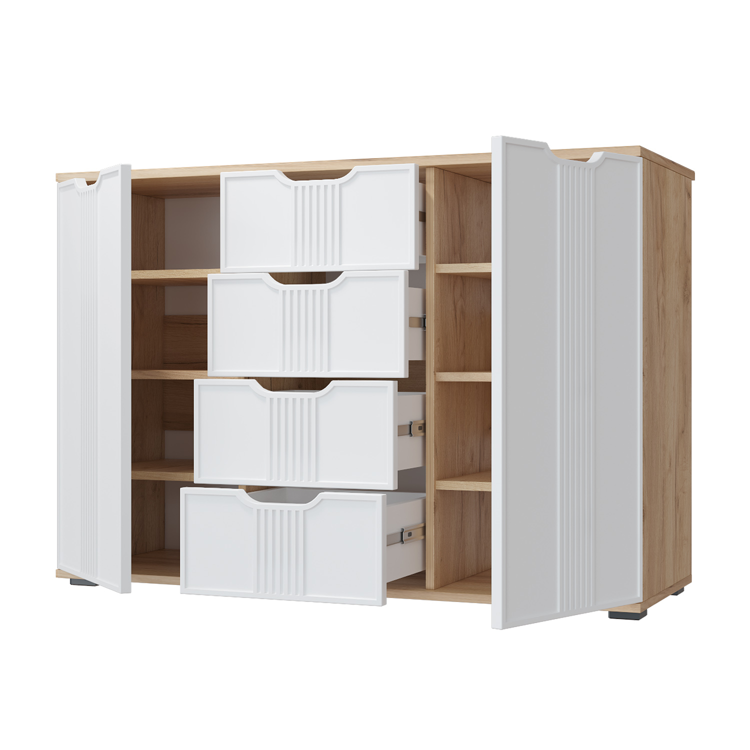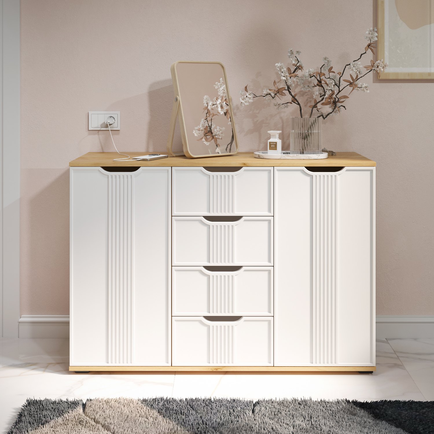 Комод Эмилия ЭЛ-21 изготовлен из ЛДСП 16 мм, фасады МДФ. Свес крышки в 30 мм обеспечит прилегание к стене с любым плинтусом. Фурнитура: телескопические направляющие полного выдвижения без доводчиков. Важная информация. Мебель доставляется в разобранном виде, в упаковках.