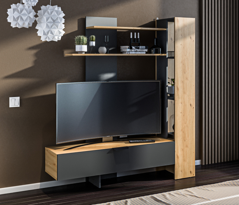 Стенка Лофт СБ-3411 – практичный и стильный предмет мебели, который станет идеальным дополнением интерьера гостиной. Габаритные размеры – ширина 143 см, высота 158 см, глубина 36 см.