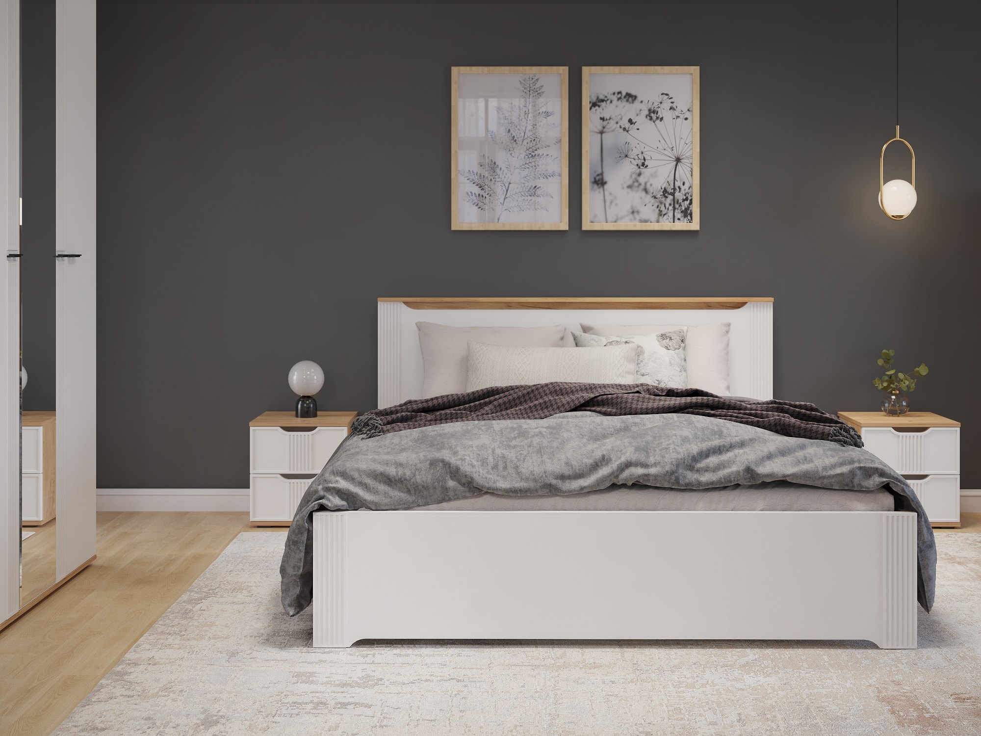 Кровать Эмилия ЭЛ-30 прекрасно впишется в интерьер спальни в современном стиле. Прямые линии фасадов понравятся ценителям минимализма в дизайне. Корпус кровати изготовлен из качественного ЛДСП толщиной 25/16 мм, фасады выполнены из МДФ 25 мм. Надежное основание и анатомическая решетка обеспечат оптимальный уровень комфорта во время сна. Размер спального места - 1600х2000 мм. На широкой кровати достаточно места для отдыха одного или двух человек. Высота изножья 380 мм, изголовья 911мм. Рекомендуемый параметры при выборе матраса в мм: 1600х2000х160-200. Матрас утопает в основание на 100 мм. Кровать идеально сочетается с прикроватными тумбочками серии Эмилия. Обратите внимание! Матрас в комплект не входит и приобретается дополнительно. Мебель доставляется в разобранном виде, в упаковках.
