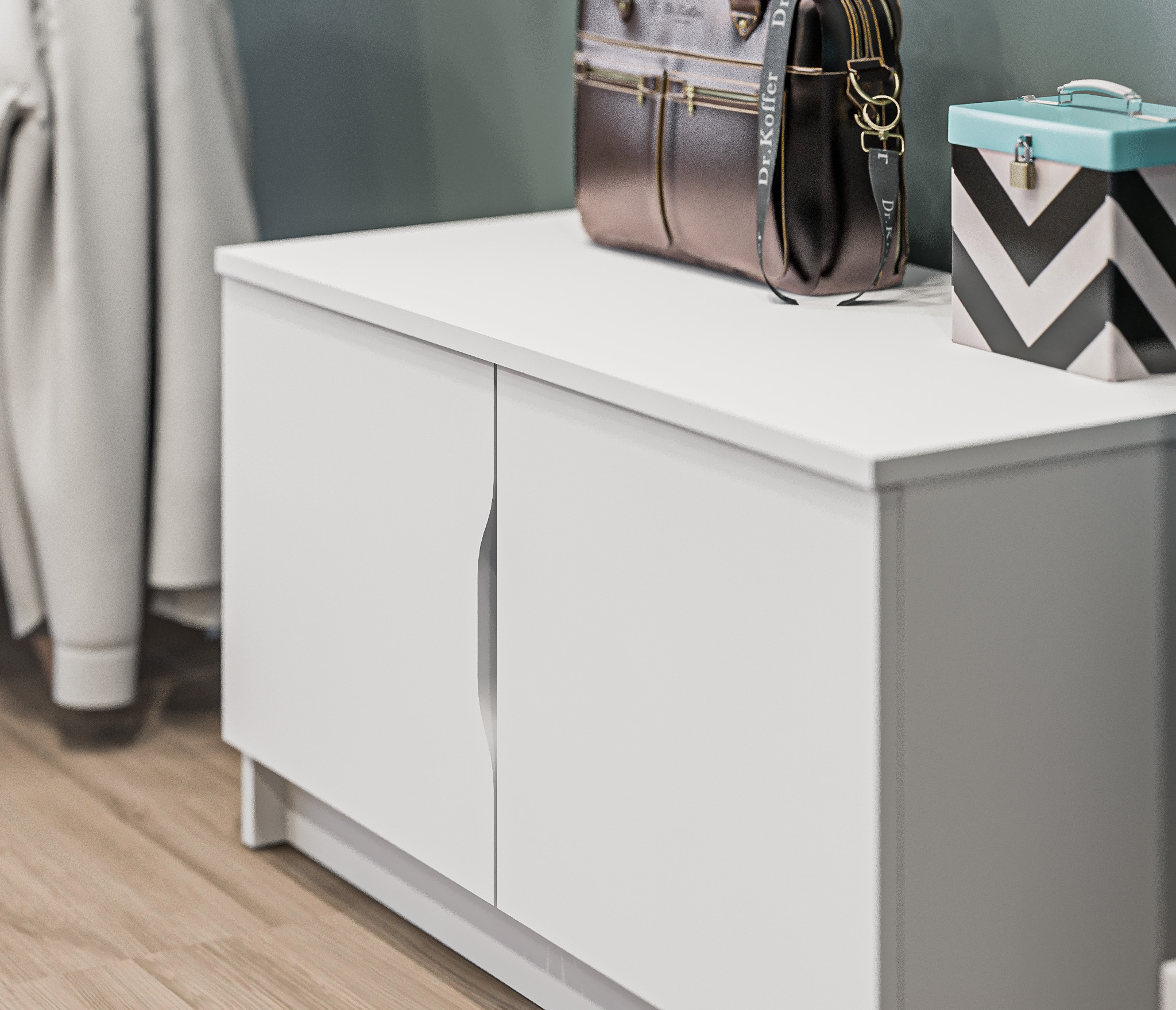 Тумба предлагает удобное хранение и функциональность. Она оснащена двумя дверцами, вы можете хранить обувь, аксессуары и другие предметы, необходимые в прихожей.