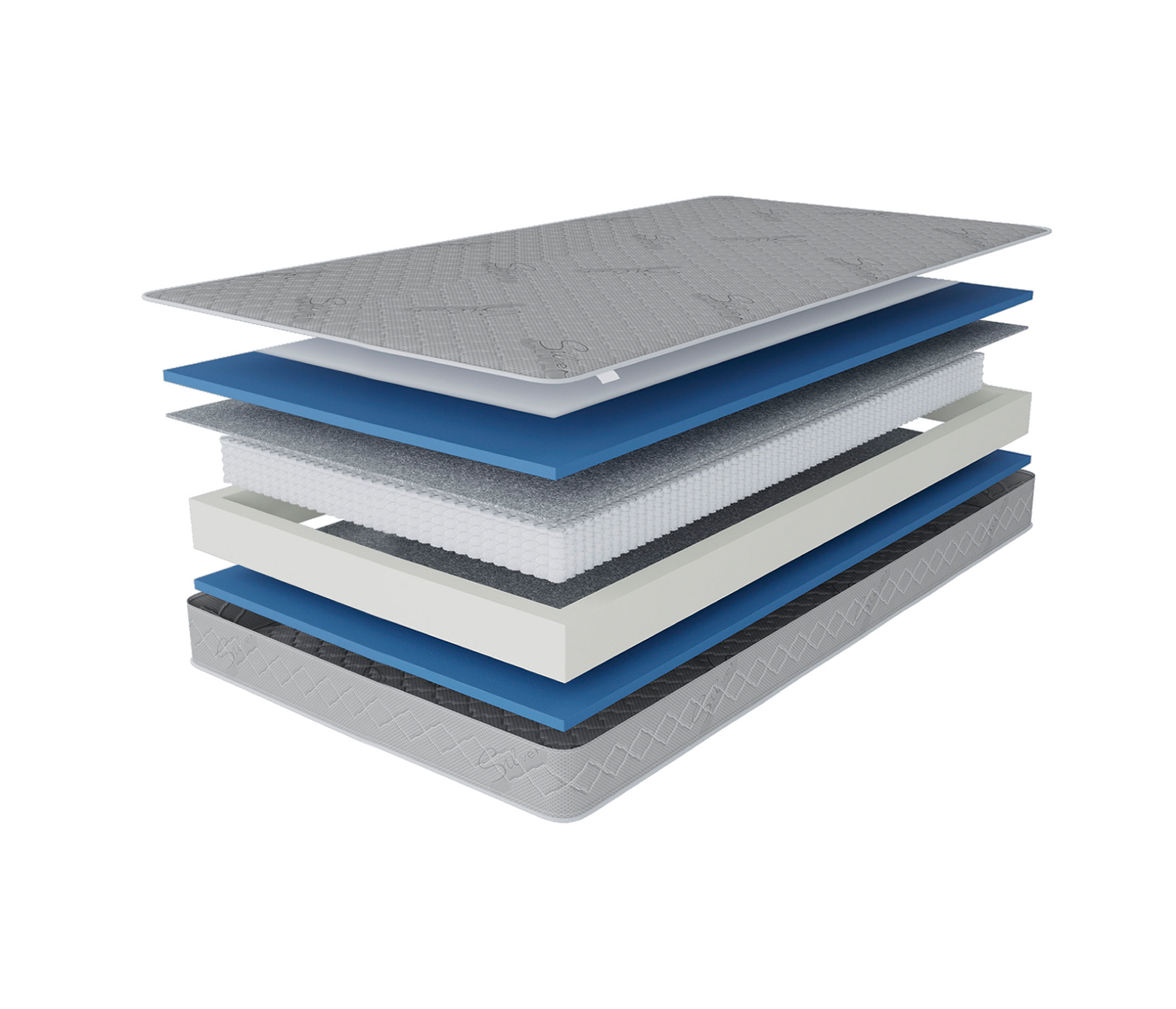 - термовойлоку, который покрывает пружинный блок с обеих сторон. Экологически чистый и прочный, воздухопроницаемый материал защищает комфортные слои от истирания пружинным блоком и распределяет нагрузку;