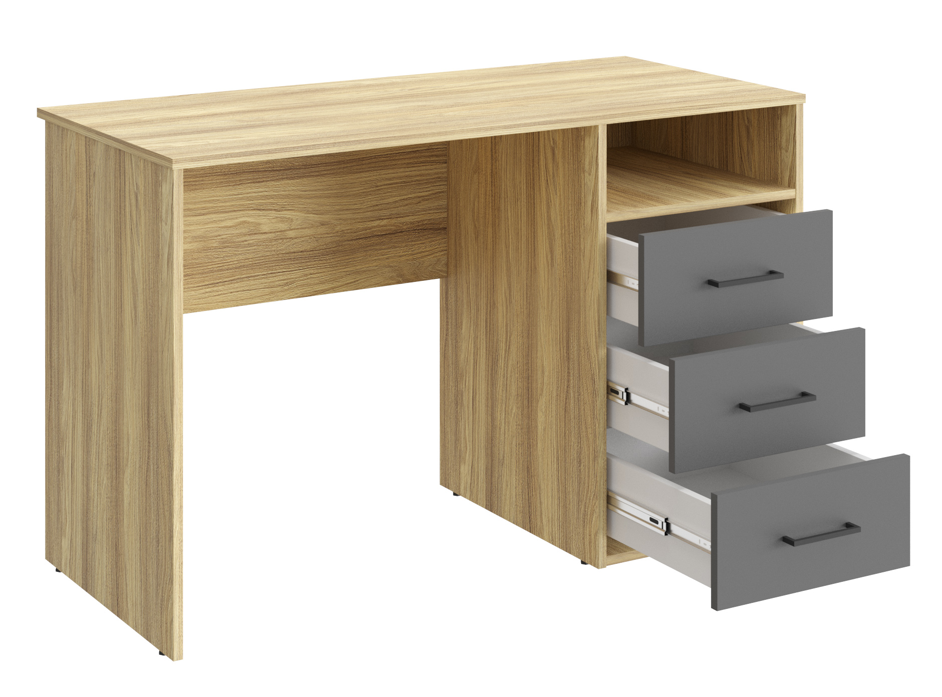 Письменный стол Оскар ОС-20 идеально подойдет для создания рабочего места в небольшом помещении. Благодаря своей универсальности стол с ящиками и нишей может использоваться как компьютерный, офисный, письменный или стол для ноутбука. С его помощью вы сможете организовать порядок на своем рабочем месте. Стол гармонично впишется в любой стиль интерьера. Современный и простой дизайн делает его идеальным для использования дома и в офисе. Свес крышки в 30 мм обеспечит прилегание к стене с любым плинтусом.