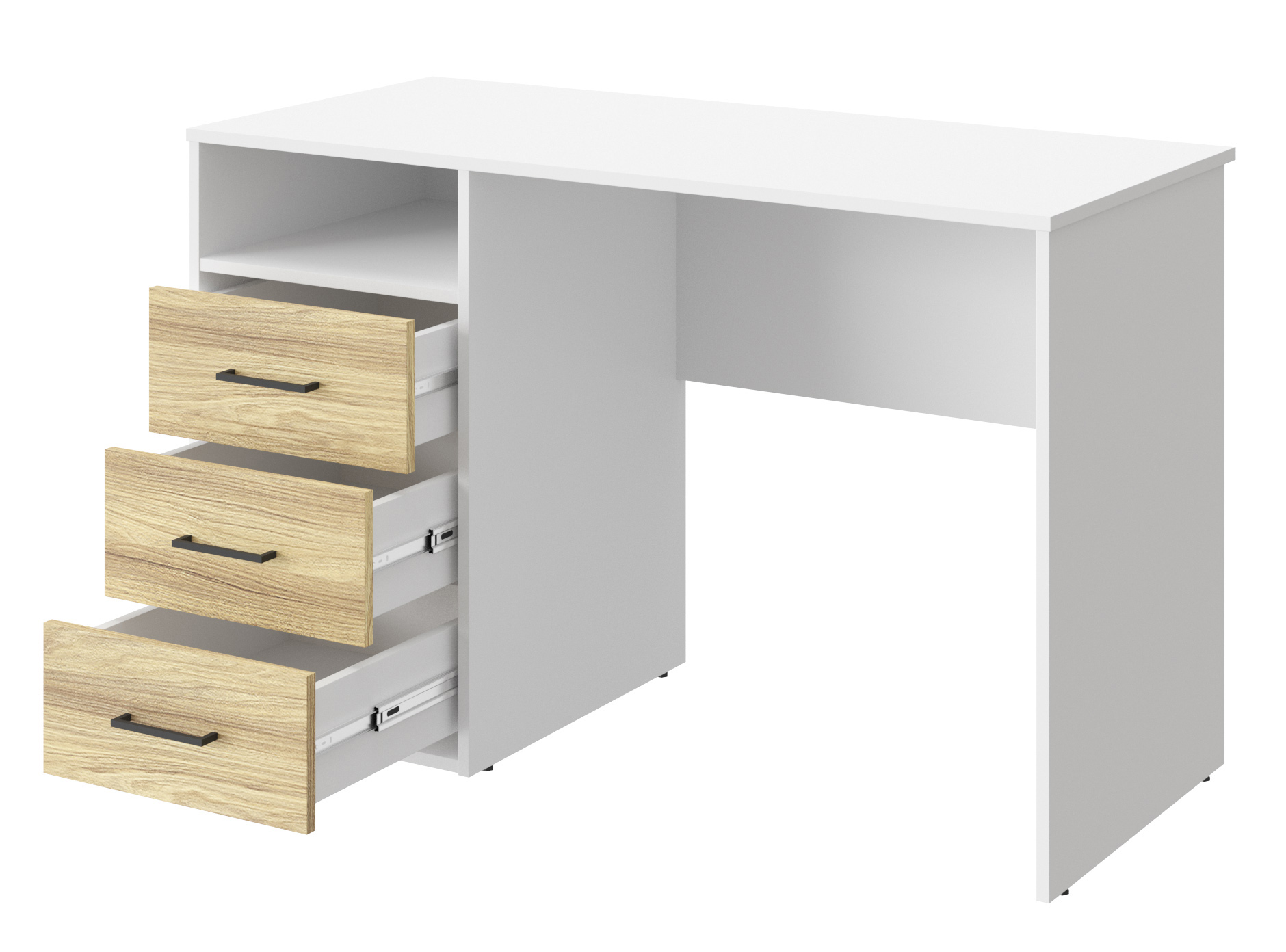 Письменный стол Оскар ОС-21 идеально подойдет для создания рабочего места в небольшом помещении. Благодаря своей универсальности стол с ящиками и нишей может использоваться как компьютерный, офисный, письменный или стол для ноутбука. С его помощью вы сможете организовать порядок на своем рабочем месте. Стол гармонично впишется в любой стиль интерьера. Современный и простой дизайн делает его идеальным для использования дома и в офисе. Свес крышки в 30 мм обеспечит прилегание к стене с любым плинтусом. Фурнитура: телескопические направляющие полного выдвижения без доводчиков, ручки пластик. Регулируемые опоры позволяют компенсировать возможные неровности пола.