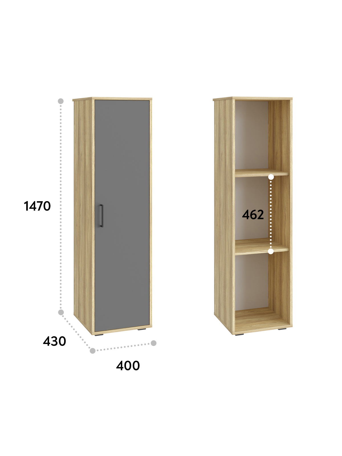 Шкаф-пенал Оскар ОС-01 - отличное решение для организации системы хранения. Лаконичный дизайн и компактные размеры делают эту мебель оптимально подходящей для любых помещений, как жилых, так и офисных. Шкаф пенал может украсить детскую комнату, спальню или офис, подойдет к любому интерьеру. За распашной дверцей располагаются две вместительные полки. Шкафчик обеспечит хранение вещей, игрушек, книг или других принадлежностей. Фасад распашного шкафа декорирован стильной ручкой, что делает открывание наиболее удобным. Дверь можно повесить как на правую, так и на левую сторону. Регулируемые опоры позволяют компенсировать возможные неровности пола. Фурнитура: ручка пластик, петли с доводчиками.