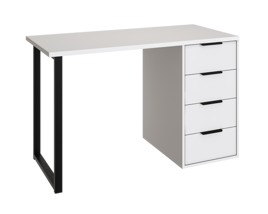 Стол письменный С-400 позволит создать комфортное и стильное рабочее пространство в офисе или домашнем кабинете. Стол С-400 можно использовать в качестве маникюрного стола. Стол имеет прочную стальную опору и тумбу с четырьмя выдвижными ящиками. Столешница изготовлена из ЛДСП 25 мм. Стол может быть собран в зеркальном варианте «правым» или «левым». Фурнитура: телескопический направляющие полного выдвижения без доводчиков, ручки и опора металл.
