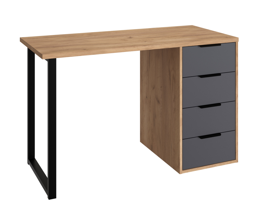 Стол письменный С-400 позволит создать комфортное и стильное рабочее пространство в офисе или домашнем кабинете. Стол С-400 можно использовать в качестве маникюрного стола. Стол имеет прочную стальную опору и тумбу с четырьмя выдвижными ящиками. Столешница изготовлена из ЛДСП 25 мм. Стол может быть собран в зеркальном варианте «правым» или «левым». Фурнитура: телескопический направляющие полного выдвижения без доводчиков, ручки и опора металл.