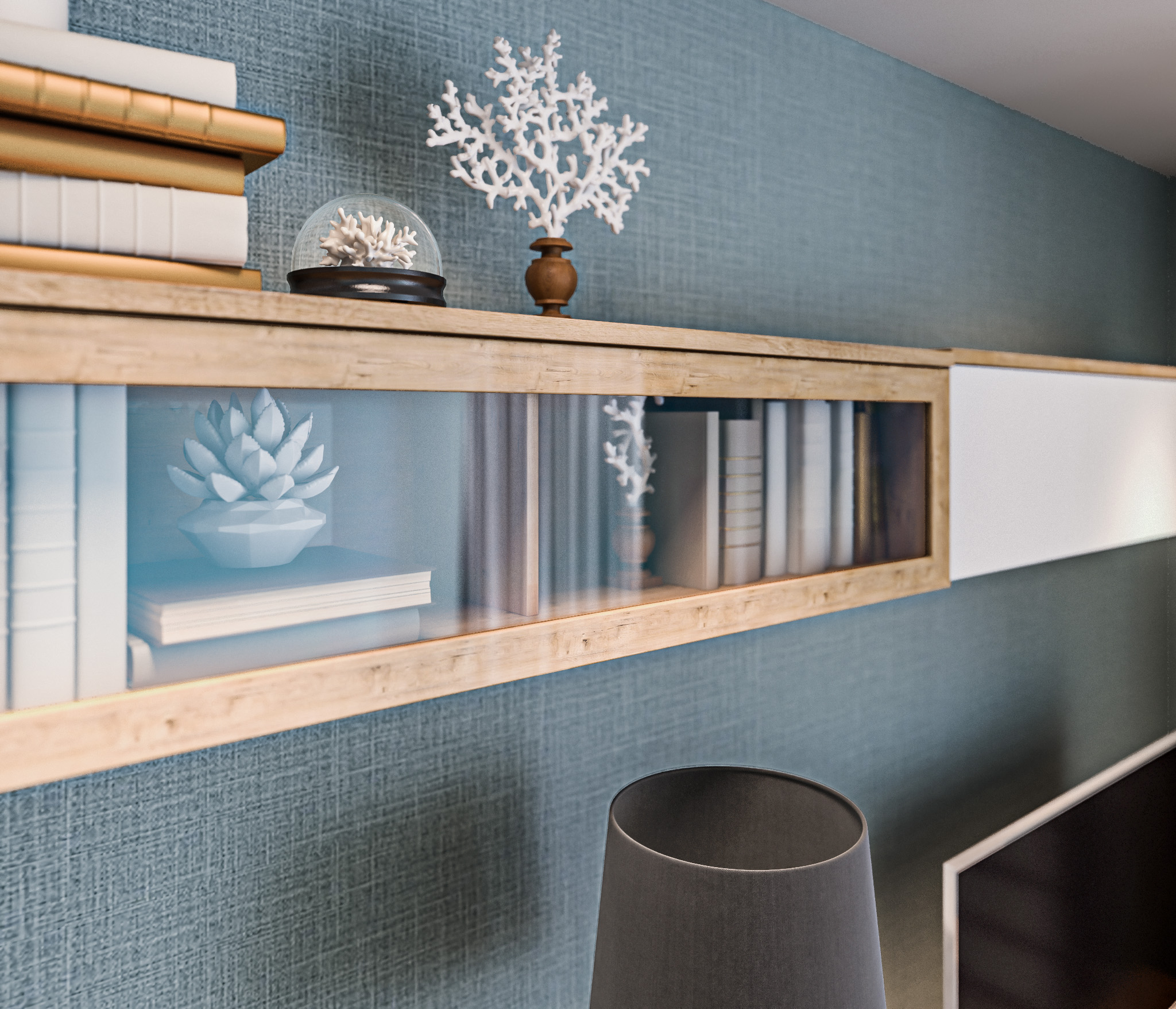 Корпус гостиной выполнен из прочного ДСП цвет Дуба Бунратти, привносит теплоту и естественность в ваш дом.