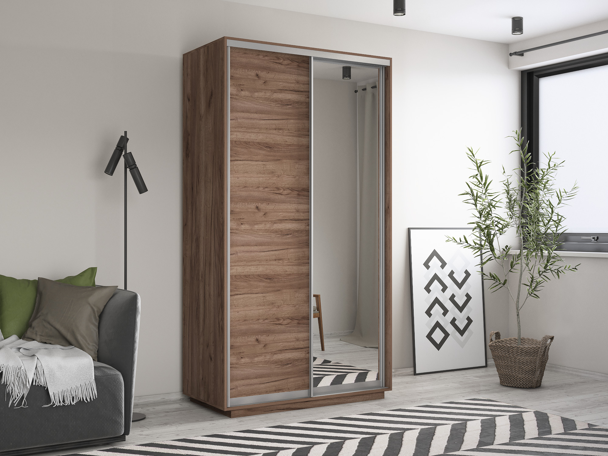 Шкаф-купе Экспресс Хит 2х дверный ДСП/Зеркало 120х60х220 (Дуб/крафт/табак)
