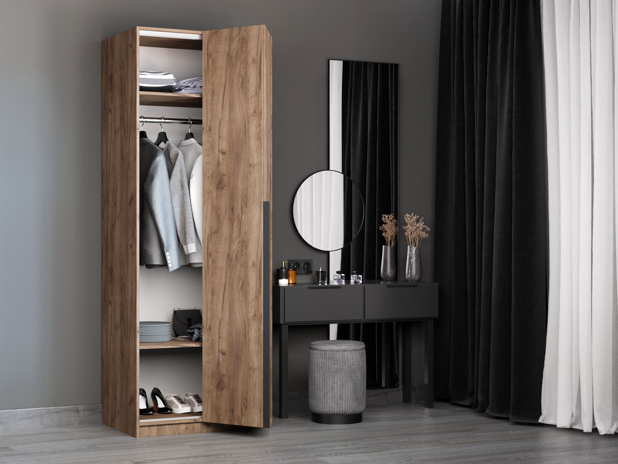 Локер — вместительный шкаф со складной системой открывания, отличающийся своим удобством в эксплуатации и легкой установкой. Благодаря надежным полкодержателям - штифтам, полки шкафа могут выдерживать до 15 кг, штанга выдерживает до 60 кг. Шкаф оснащен долговечной, ударостойкой кромкой ПВХ, которая защищает торцы от сколов и повреждений. Складная система дверей WingLine L с механизмом Push to Move позволяет открыть шкаф всего одним нажатием на фасад. Плавный и тихий ход, надежность в эксплуатации и максимальное складывание дверей – это инновационный подход к организации порядка. Данная система обеспечивает панорамный эффект и свободу в дизайне.